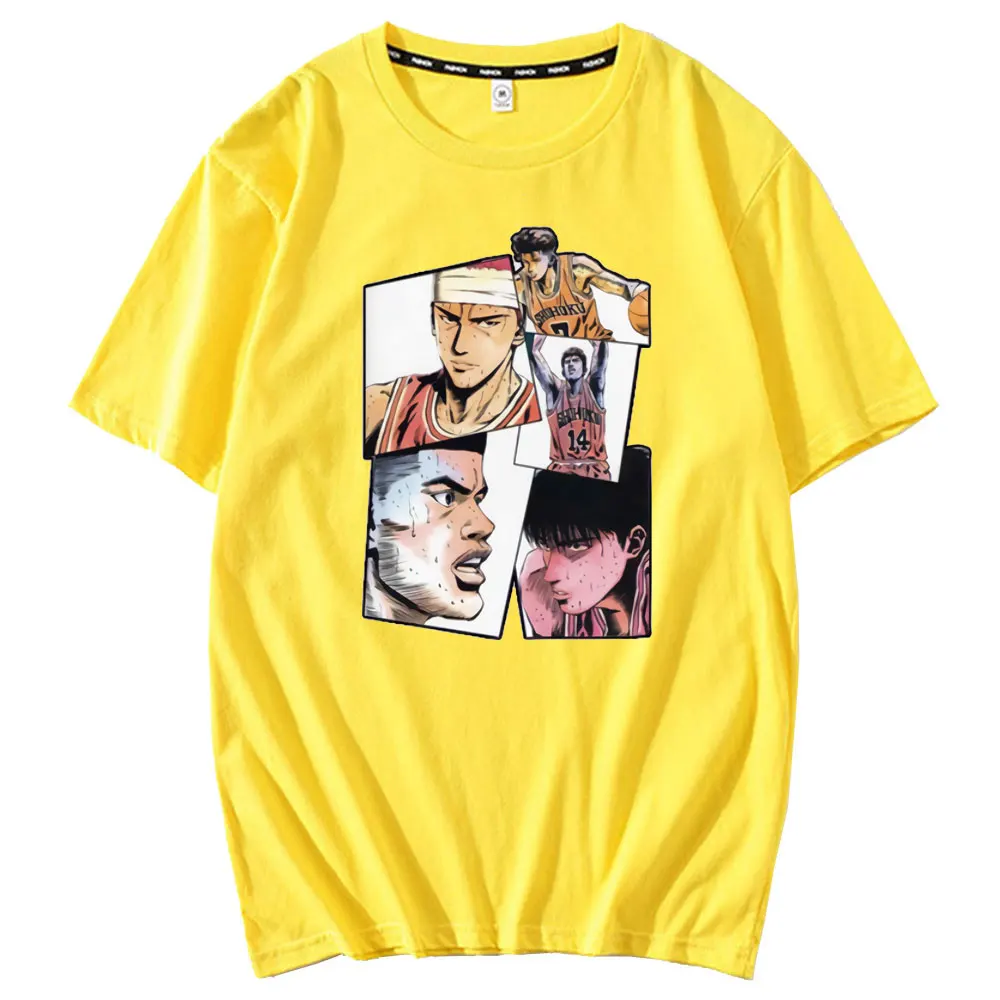 Коллекция 2021 года, хлопковая Футболка для мальчиков с коротким рукавом и застежкой в стиле Slam Dunk Hanamichi Sakuragi, модная свободная футболка в стиле аниме Харадзюку