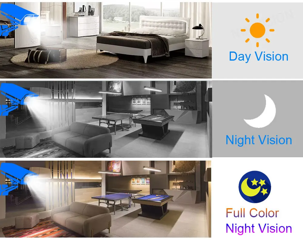 Умный фильтр, отсекающий ИК-спектр автоматически переключается между днем и ночью, цвет toreduce в дневное время и повышает яркость изображенияВ ночное время вы можете получить яркие кадры наблюдения от рассвета до темноты.