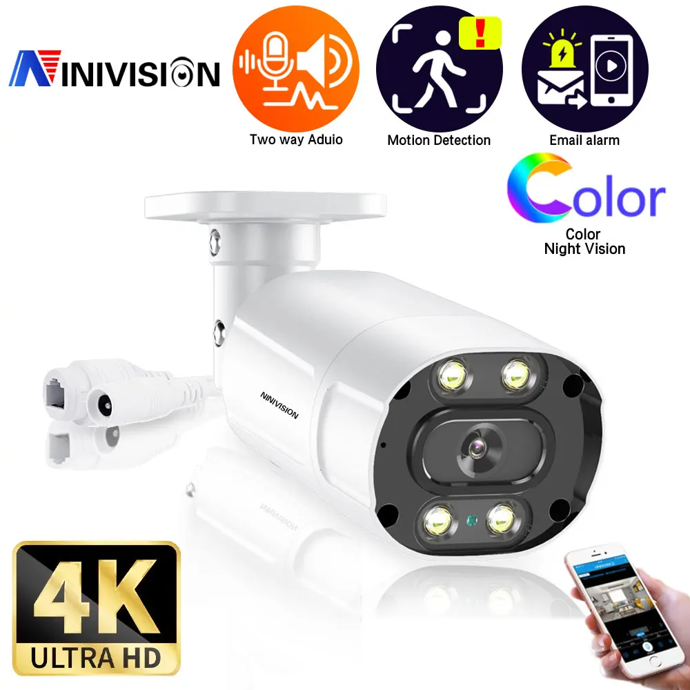 Совместимая камера видеонаблюдения 4K Color Vu IP, 247 часов полноцветное ночное видение, 8 Мп, двусторонняя аудиосвязь, POE, уличная камера IP66 IPC