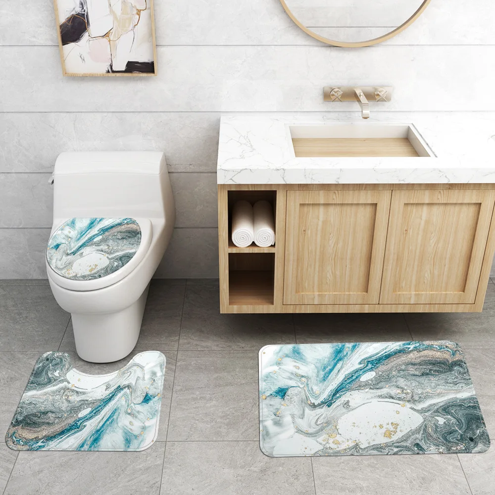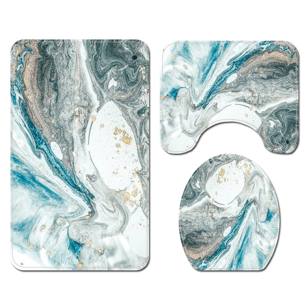 Набор ковриков для ванны с водонепроницаемой занавеской для душа сине-серый мраморный душевой коврик для ванной комнаты