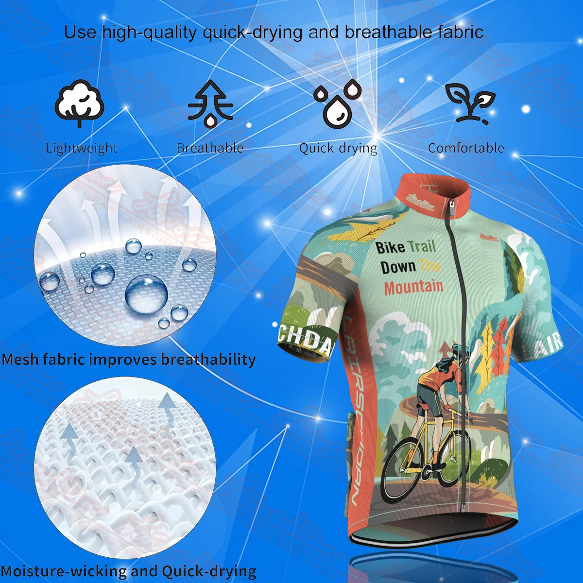 ● Быстросохнущий, дышащий и Сверхлегкий материал, в соответствии с технологией человеческого тела используются Подходящие материалы, чтобы сохранить сухость и комфорт.● 3D и бесшовный крой для большей комфортности и посадки.● Качественная молния работает плавно, чтобы предотвратить Застревание и трещины.● Велосипедная майка изготовлена из полиэстера, дышащей сетчатой ткани, делающей ее более дышащей и удобной.● Сзади есть 3 кармана для хранения ценностей● Использование итальянских чернил KIIAN для печати и экологичности велосипедной одежды, яркого цвета и никогда не выцветает.