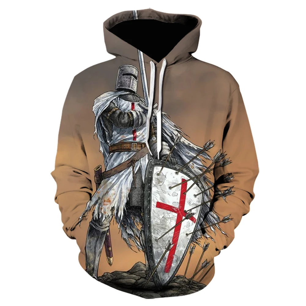 Толстовка МужскаяЖенская в стиле Харадзюку, повседневный свитшот с 3D-принтом рыцаря, средневекового доспеха, рыцаря, темплара