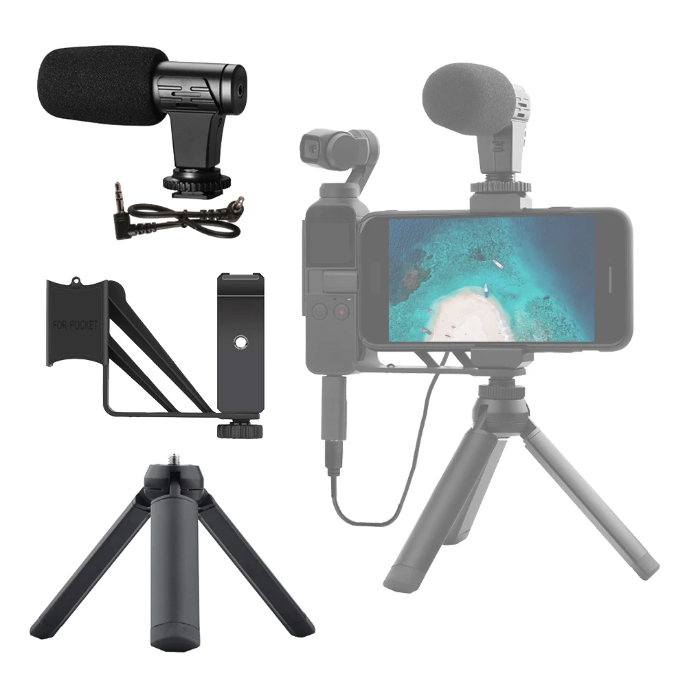 Аудио адаптер 3,5 мм Микрофон Mic для DJI OSMO карманныйКарманный 2 разъема держатель телефона Настольный Штатив для влога Live