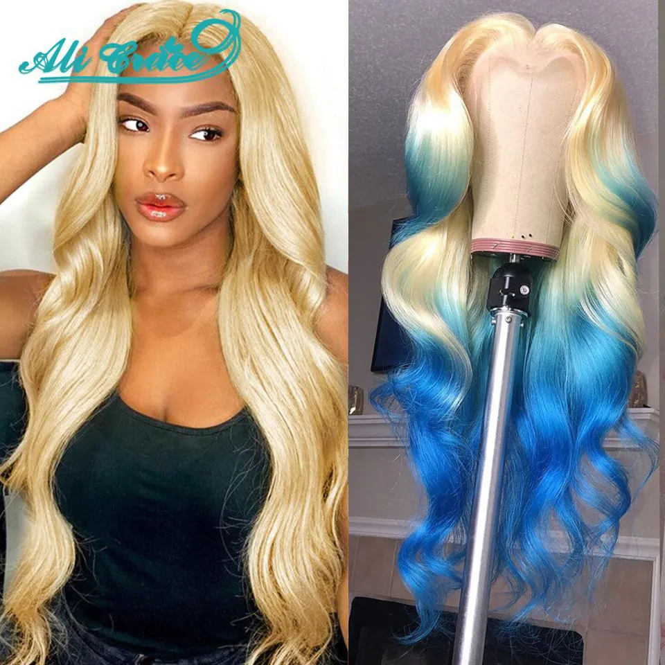 Блонд 613 волнистый парик с закрытием шнурка бразильский предварительно выщипанный 5x5 парик с закрытием для черных женщин Ali Grace блонд 613 цвет парик для волос