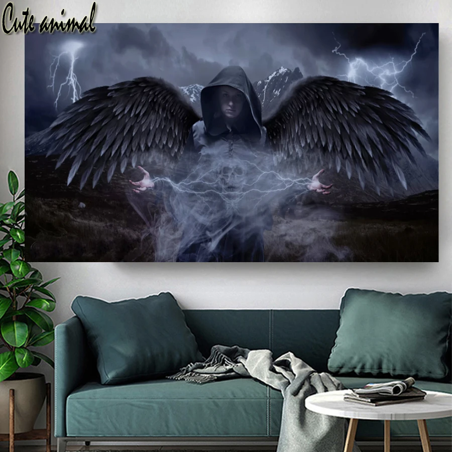 DIY 5D алмазная картина Темный ангел девушка Настенный декор полная дрель квадратные Стразы приклеенная Алмазная мозаика вышивка подарок на Хэллоуин