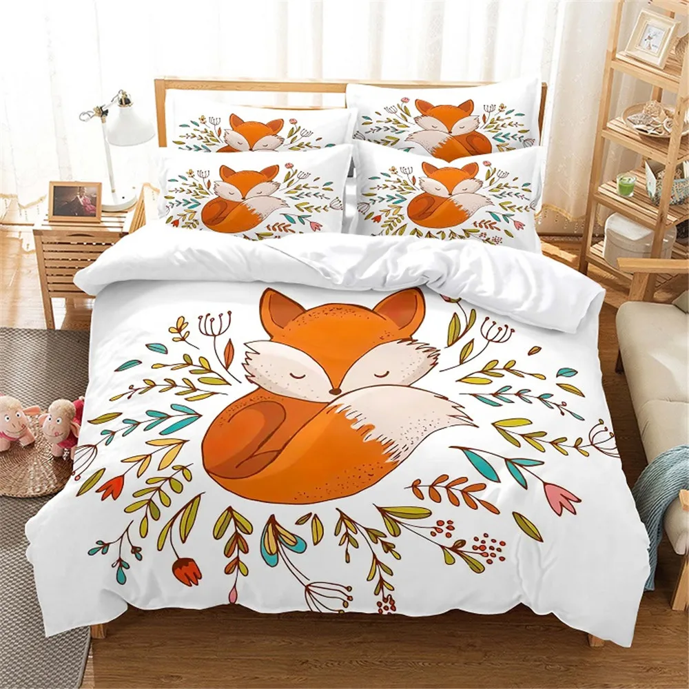 Постельное белье с 3D рисунком лисы Комплект постельного белья с пододеяльником Комплект постельного белья хлопковое постельное белье для двуспальной спальни Комплект постельного белья