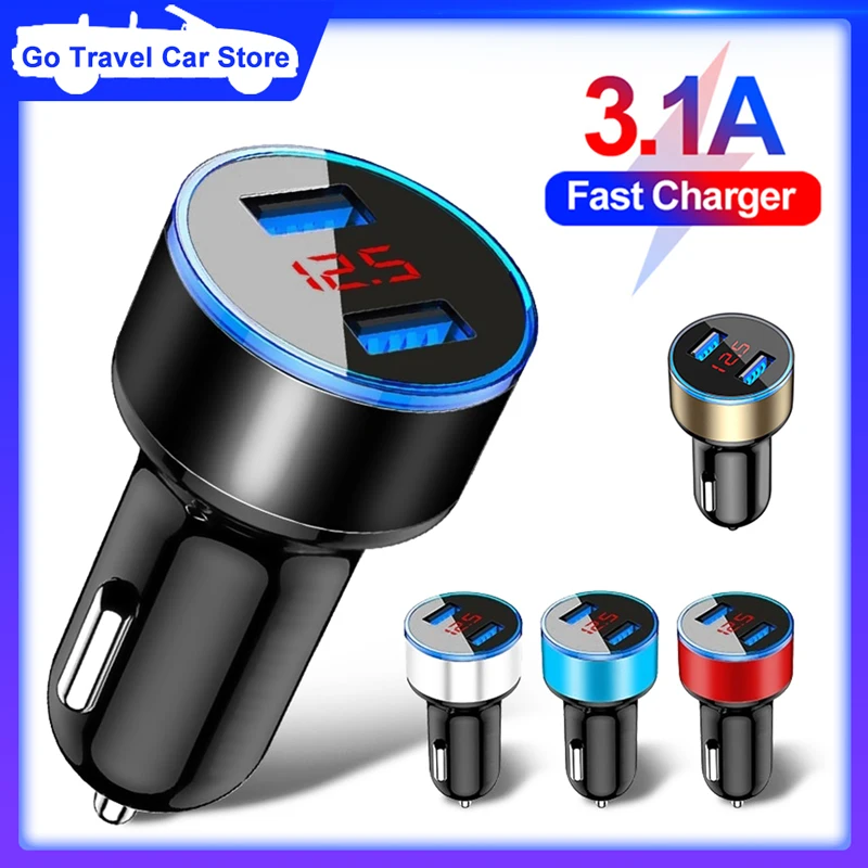 Автомобильное зарядное устройство 3,1 А, 2 порта, быстрая зарядка для iPhone 11, 12 Pro, Xiaomi 10, 9, светодиодный дисплей, адаптер для телефона, автомобильное зарядное устройство с прикуривателем