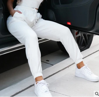 Женские модные повседневные брюки, брюки с высокой талией, эластичные джоггеры, однотонные спортивные брюки со шнуровкой, спортивные брюки для фитнеса