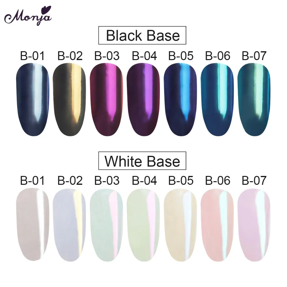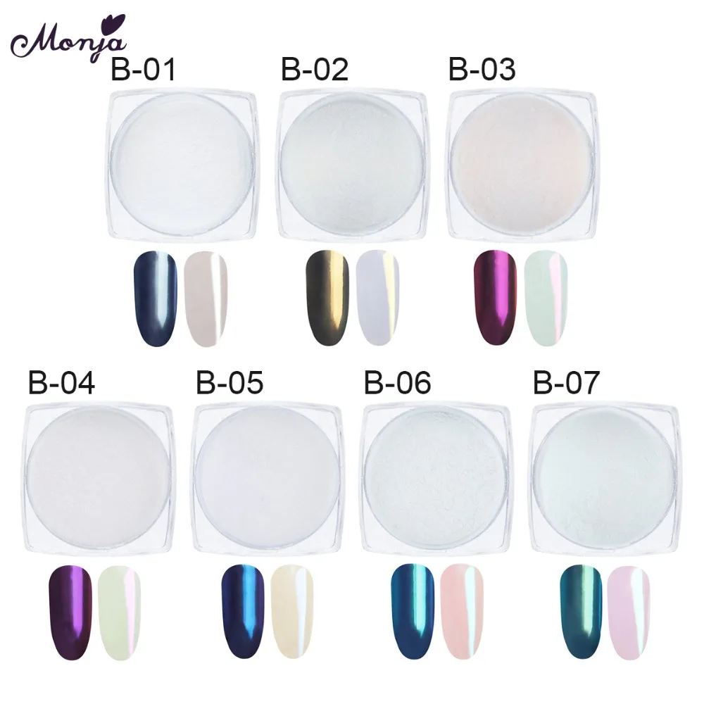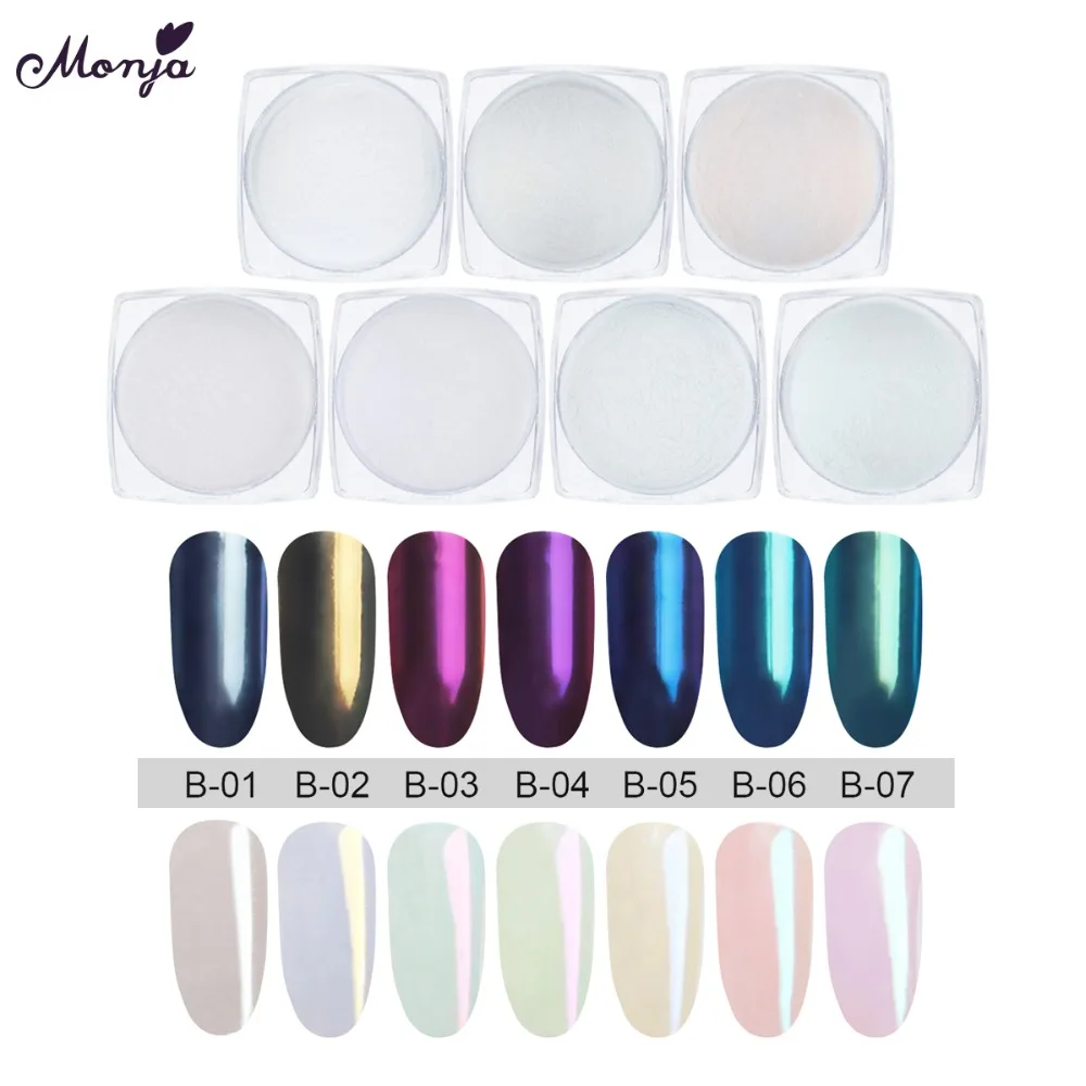 7 цветов, блестки для дизайна ногтей Monja, хромированный красочный пигмент, волшебное украшение, инструмент для маникюра