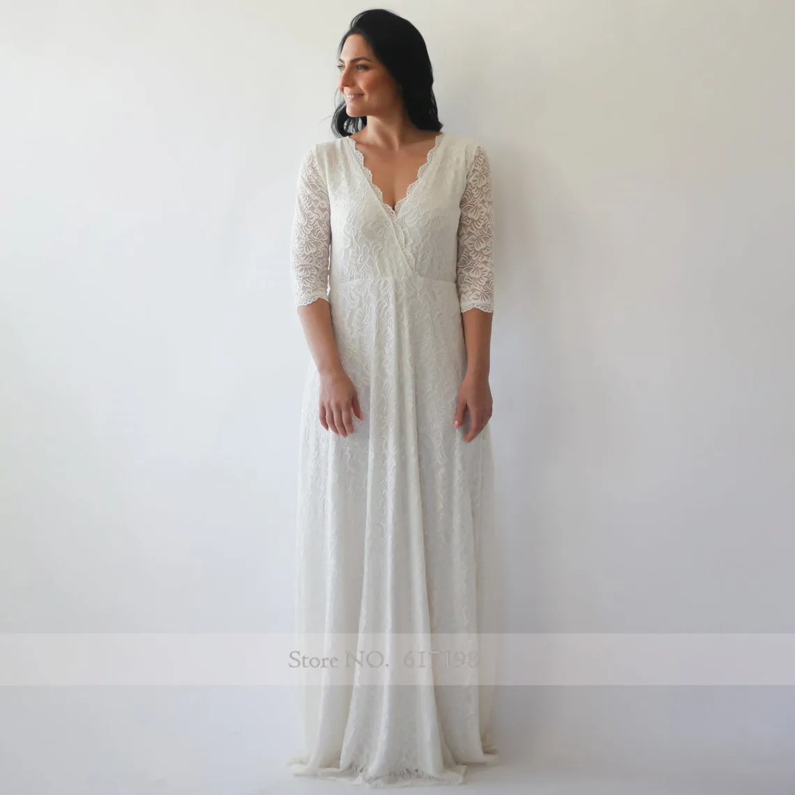 Кружевное свадебное платье-трапеция с V-образным вырезом и рукавом 2021