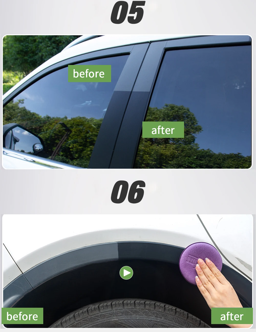 Использовал сегодня, сделал 2 чёрных автомобиль, потом был дождь. Пластик обновился, как внутри так и снаружи автомобиля. Гидрофобный эффект есть. Конечно глубокие царапины не удаляет. Расход небольшой. Закажу новый аппликатор.
