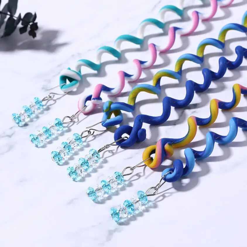 6 шт.компл., милые красочные Длинные спиральные украшения для волос со стразами, Детские Модные аксессуары для волос
