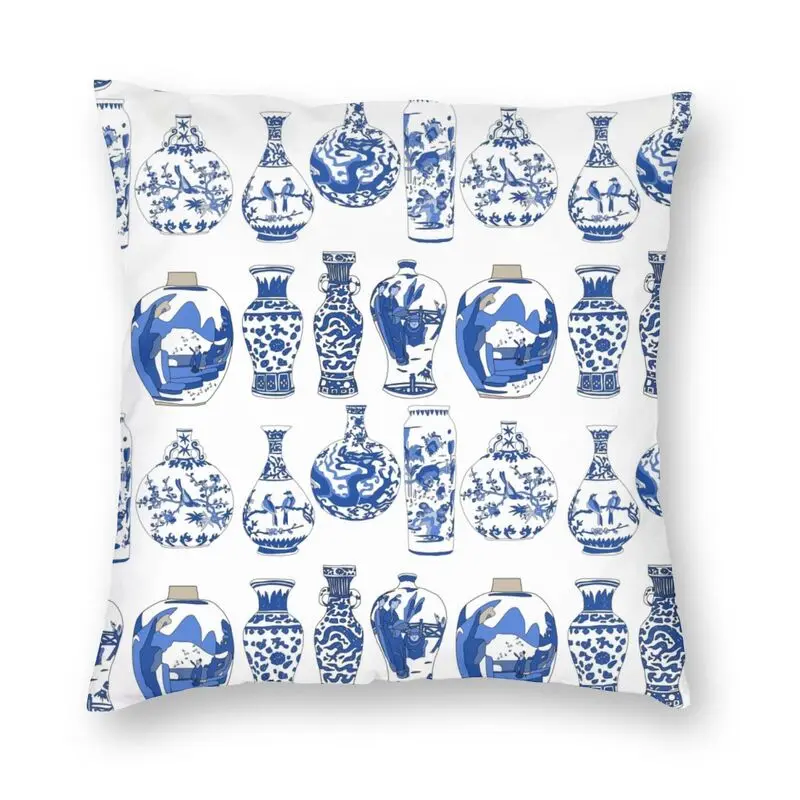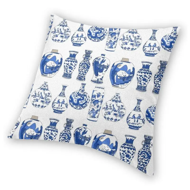 Синие восточные вазы, квадратная наволочка для подушки, украшение, шикарное искусственное покрытие, наволочка для дивана, двусторонняя