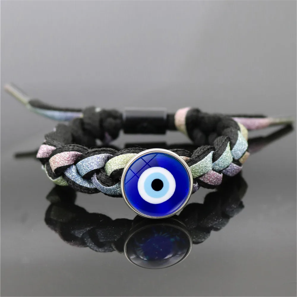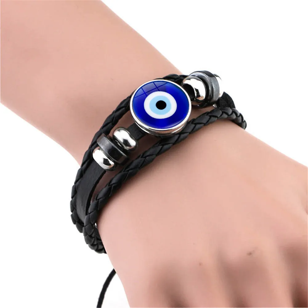 Браслет ручной работы из многослойное украшение в стиле панк тканой кожи с изображением синего сглаза