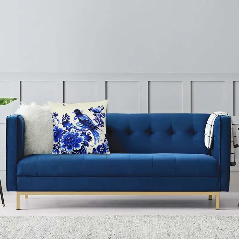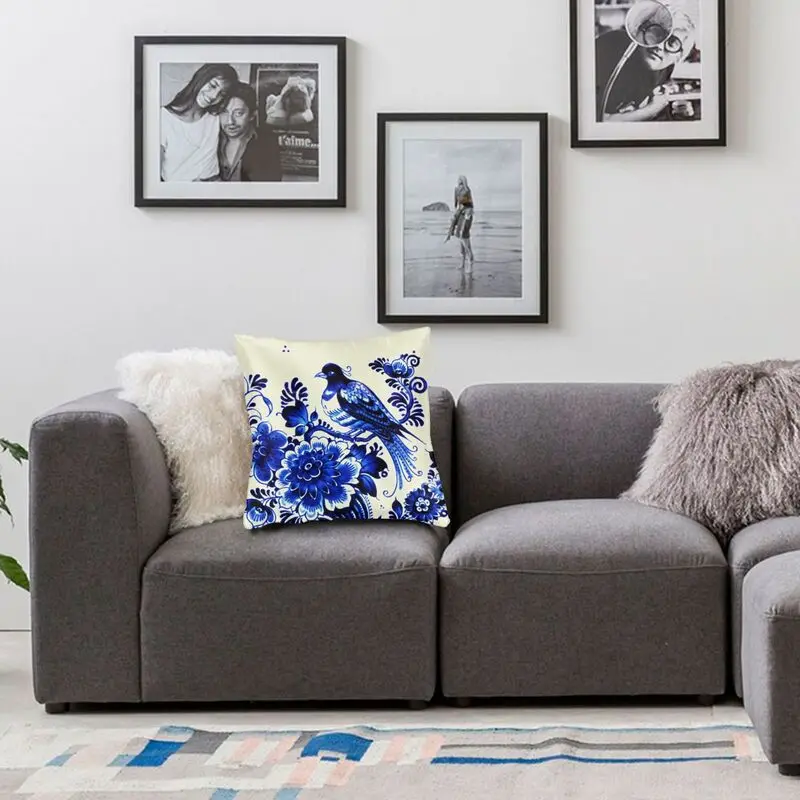 Синий фарфоровый Восточный тканевый чехол для подушки Delft с принтом в китайском стиле, квадратная напольная подушка, чехол для дивана, крутая подушка, чехол для домашнего декора