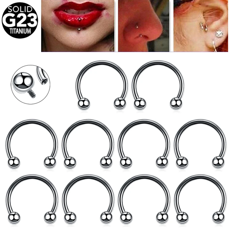 10 шт. ASTM F136 титановые подковообразные кольца с внутренней резьбой для носа губ пирсинга хрящей спирали серьги на Козелок для бровей ювелирные изделия для тела