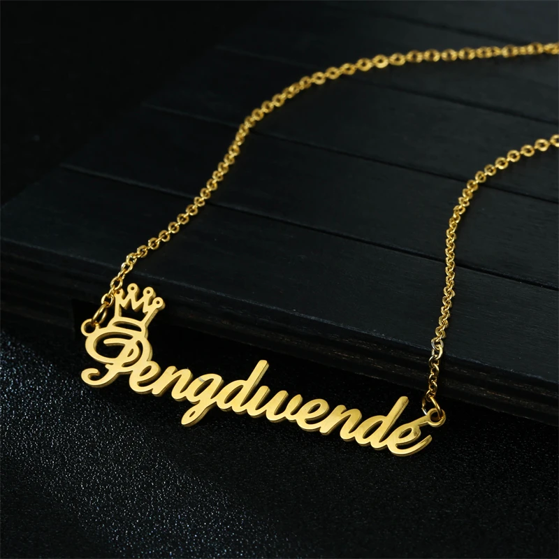 Название: заказное модное ожерелье из нержавеющей стали с именным буквенным принтом, Золотое колье, ожерелье с подвеской, именная табличка, подарок