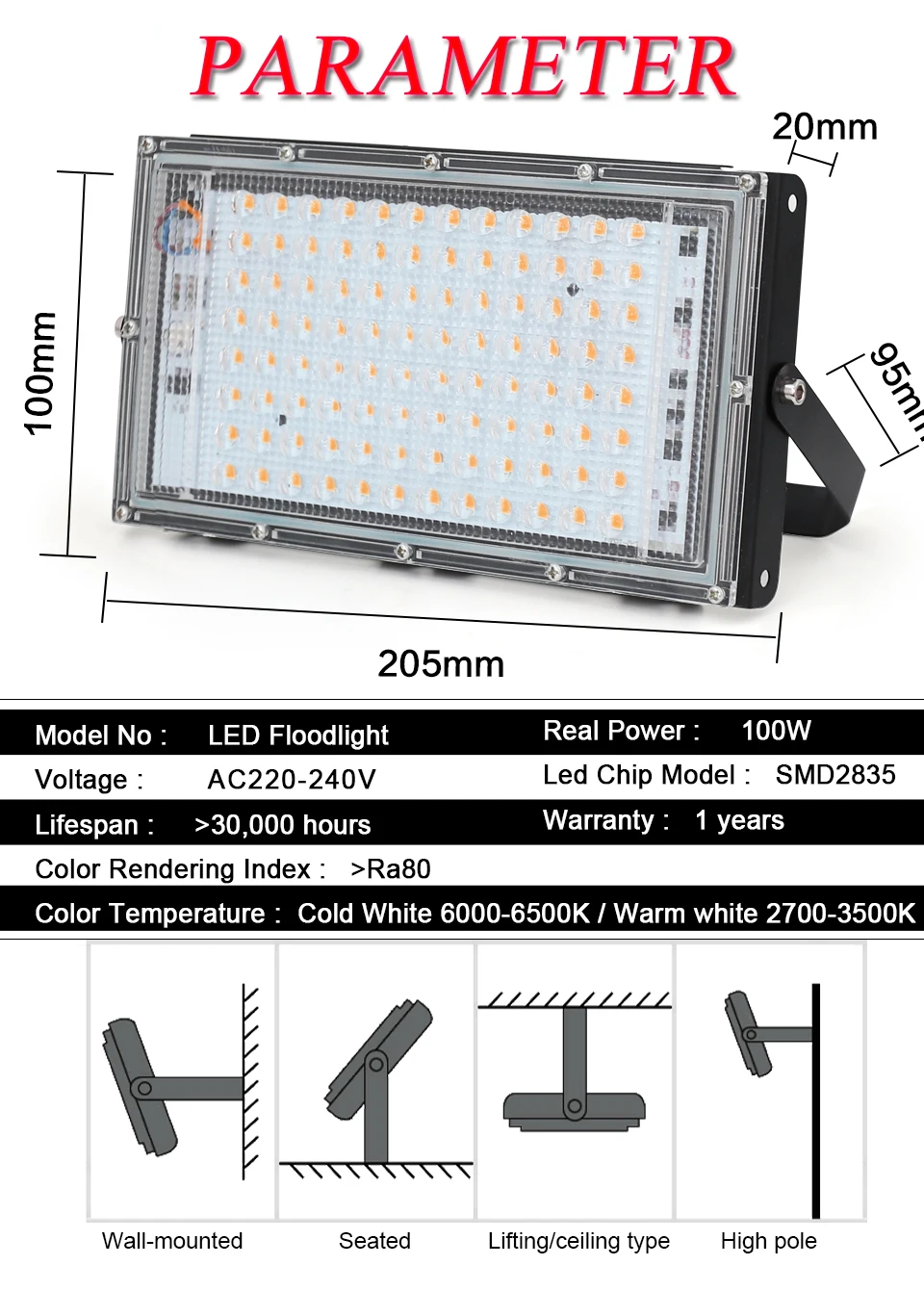 50 Вт 100 Вт 220 В открытый светодиодный прожектор светильник полны...