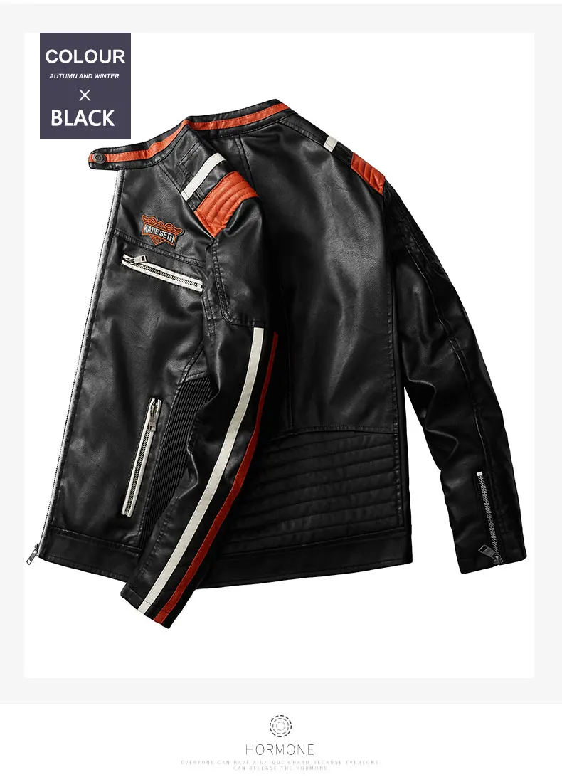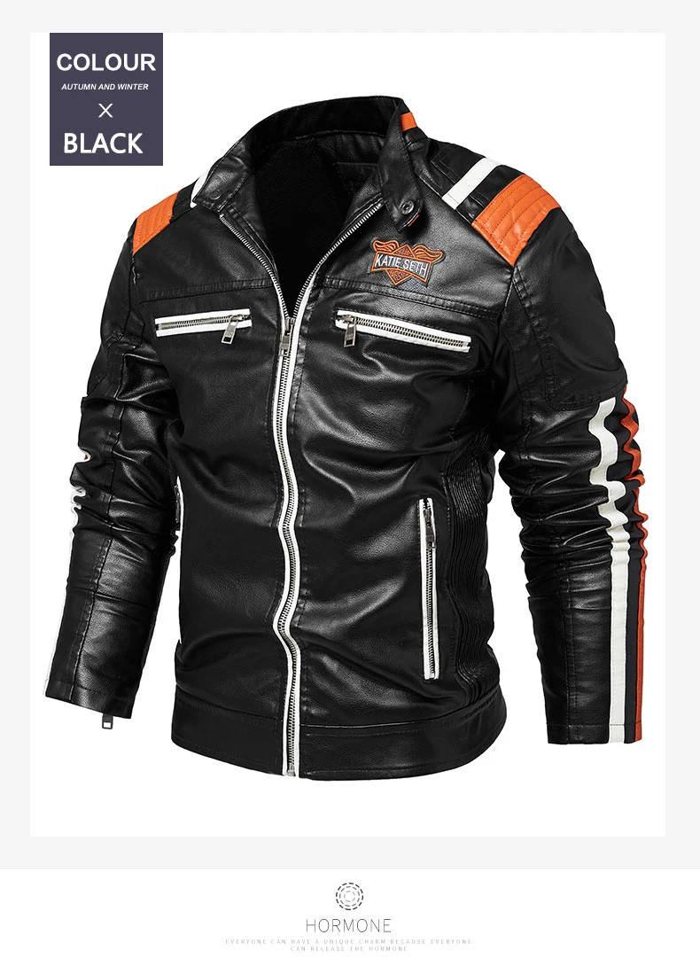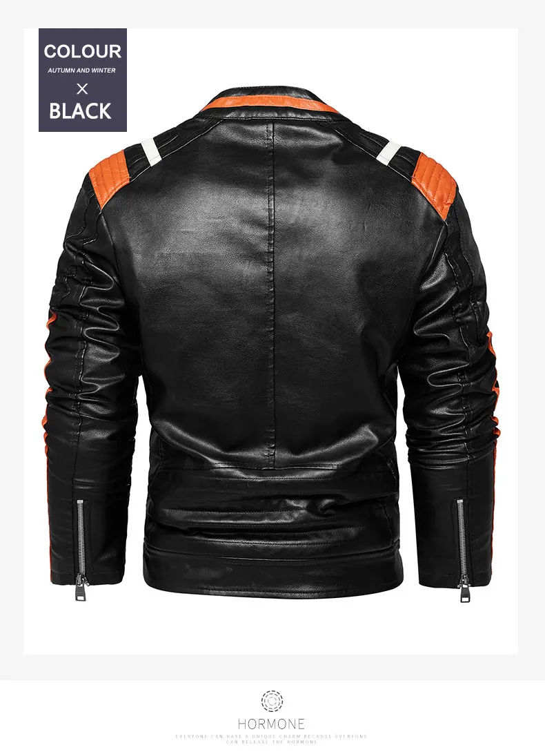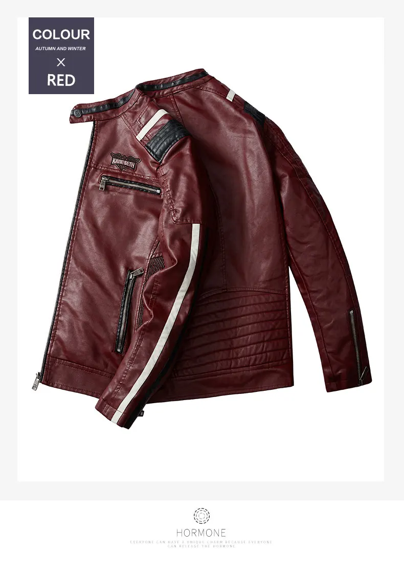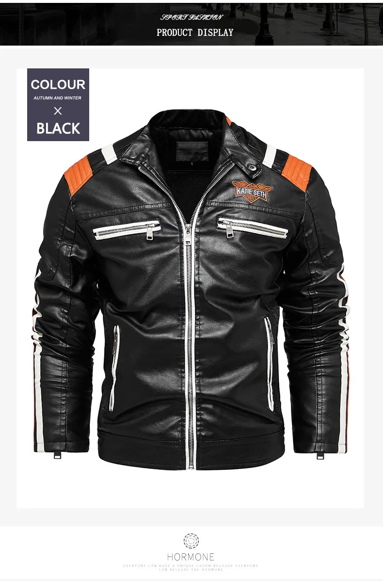 Куртка мужская кожаная, приталенный силуэт, мотоциклетная куртка, Повседневная Деловая на молнии, теплое пальто с воротником-стойкой, Осень-зима