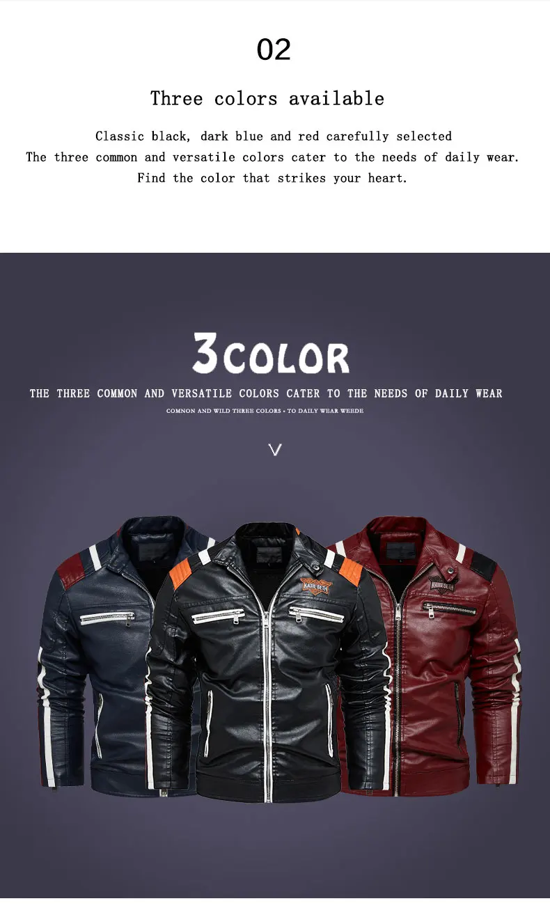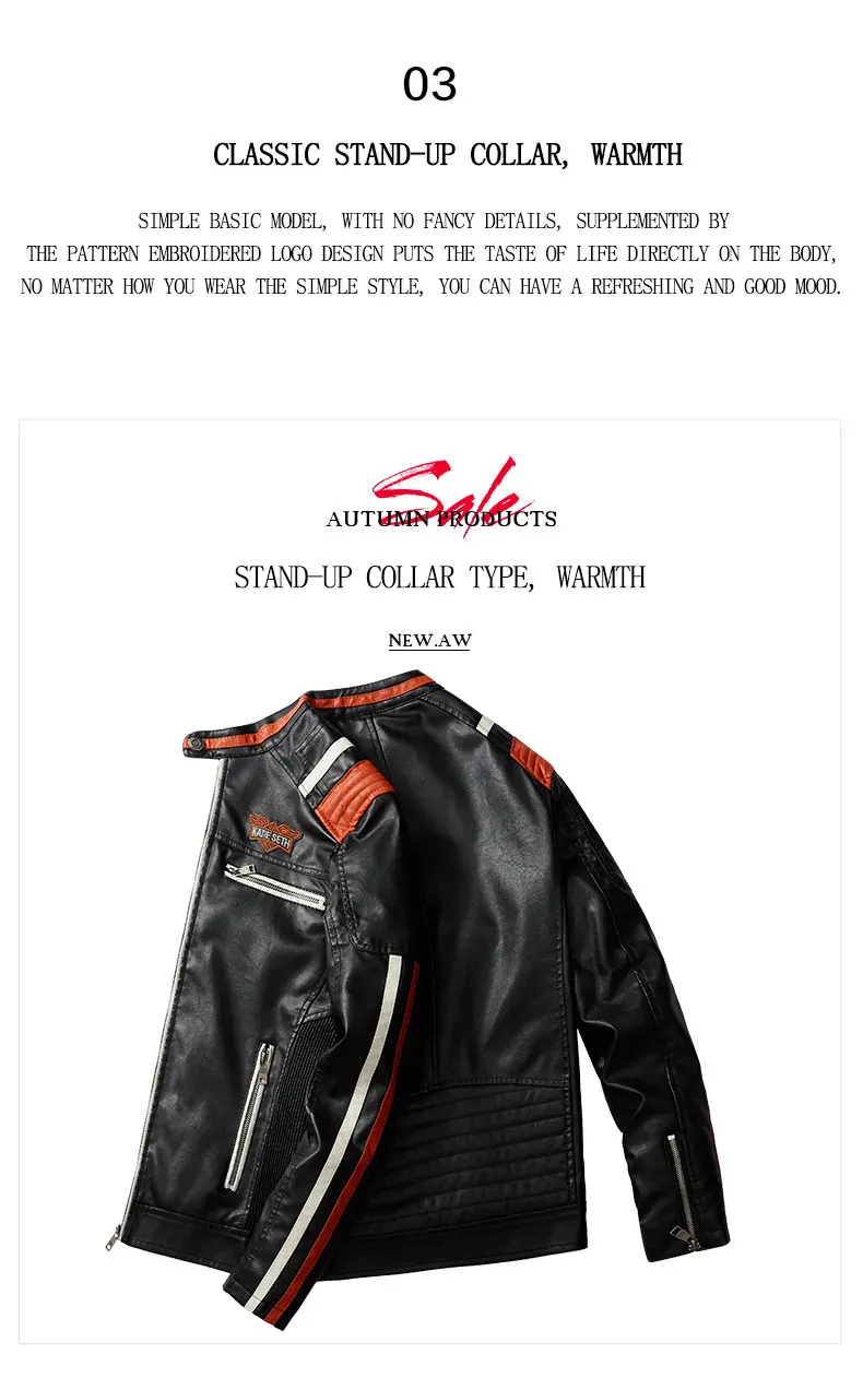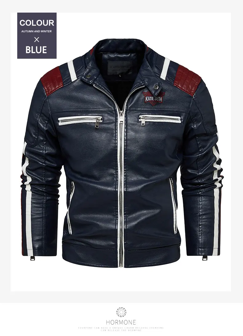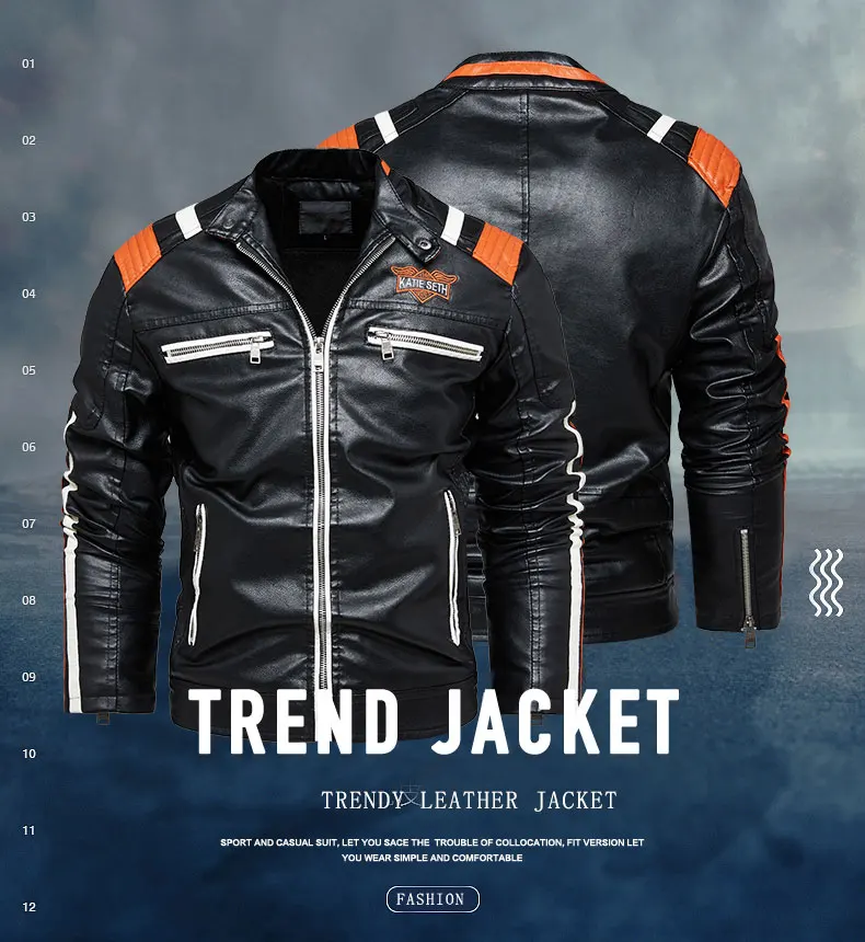 Куртка мужская кожаная, приталенный силуэт, мотоциклетная куртка, Повседневная Деловая на молнии, теплое пальто с воротником-стойкой, Осень-зима