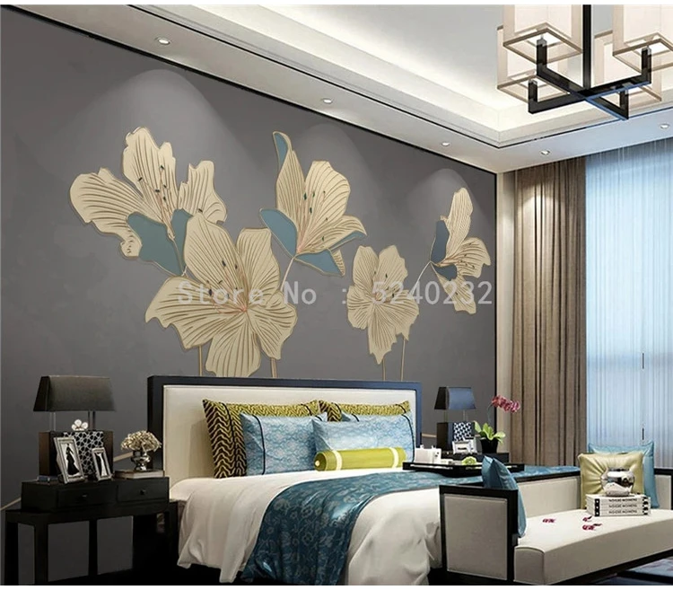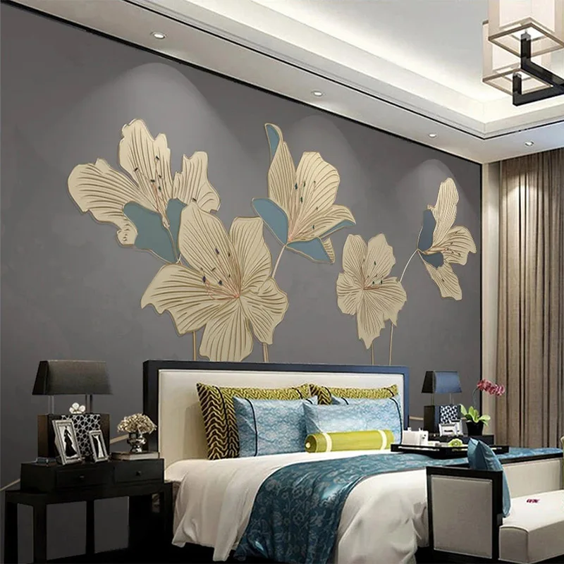 На заказ любой размер росписи обоев ручная роспись Европейский Стиль 3D Цветы светильник роскошный золотой рельефная линия фон обои