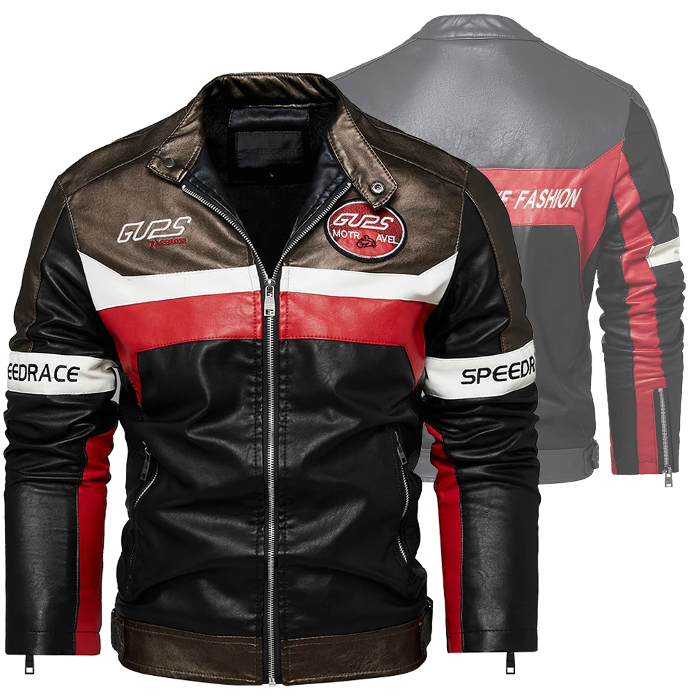 Новинка, осенне-зимняя кожаная куртка, Мужская модная деловая куртка, Мужская мотоциклетная Байкерская стильная куртка, зимнее теплое пальто в стиле пэчворк