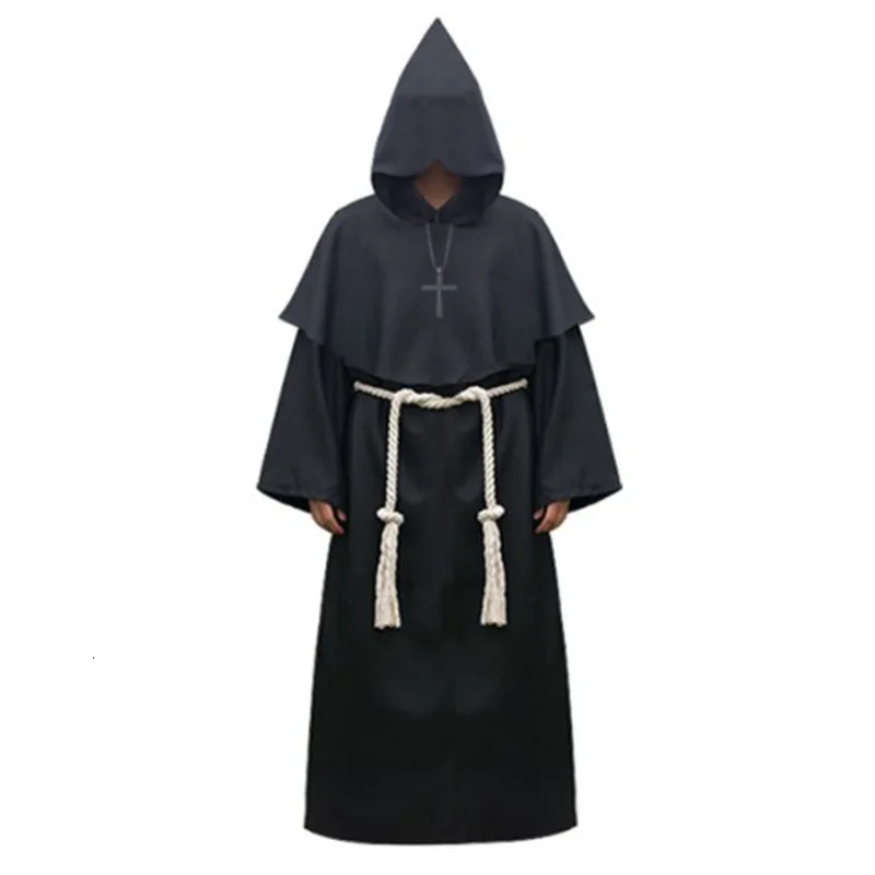 Плащ-накидка для косплея священника, фриара, комиксов, страшные костюмы для вечеринок, наряды монаха с капюшоном в средневековом стиле, эпохи Возрождения, волшебник, ведьма