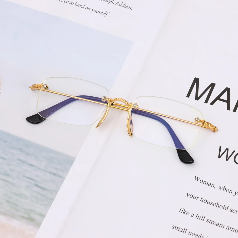 Очки для чтения без оправы для мужчин и женщин, портативные пресбиопические с защитой от ультрафиолетовых лучей, со стразами и защитой от сисветильник, + 2022-+ 100, 400
