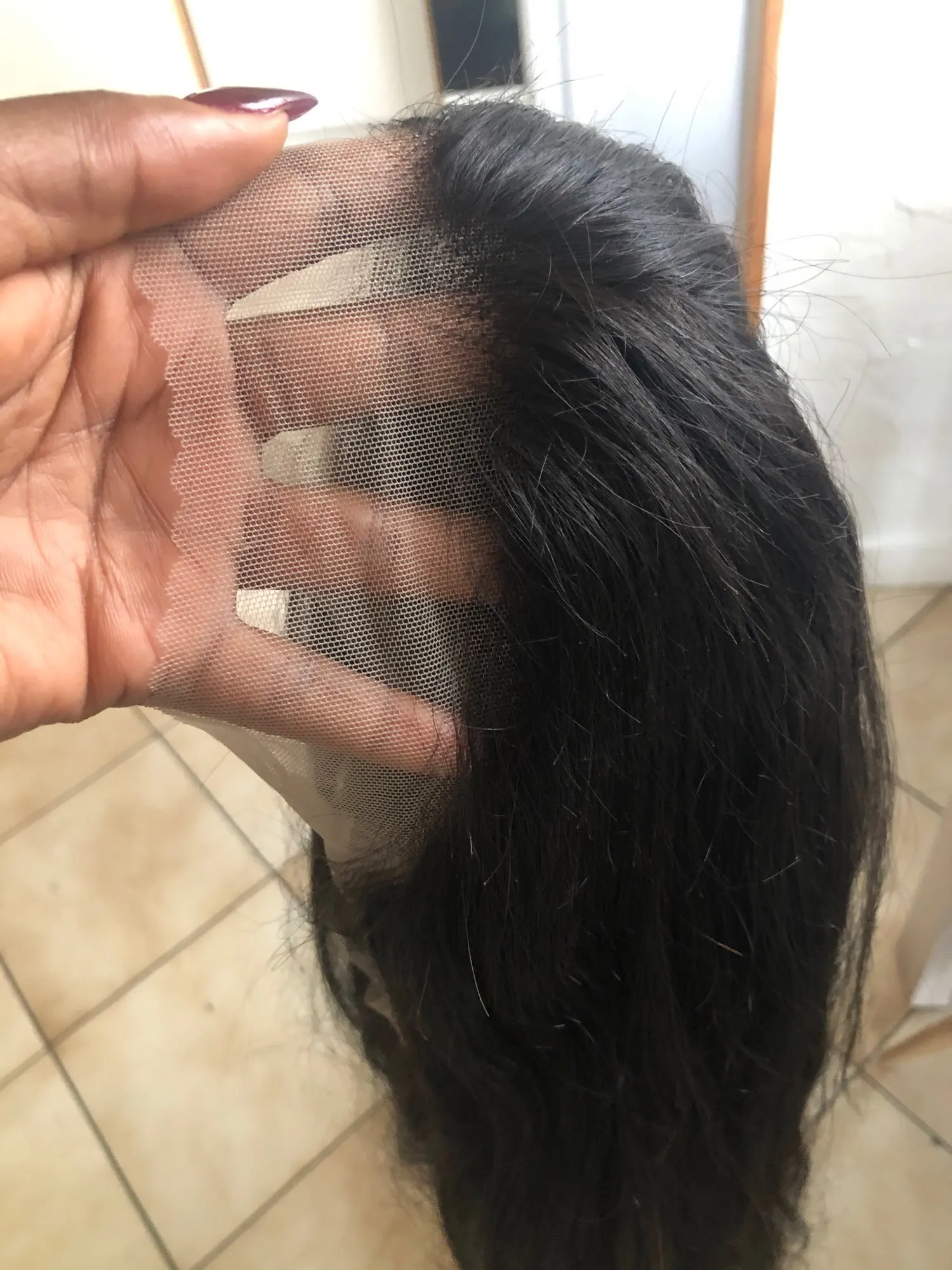 Большой Парик, который я получил, был установлен один раз, а затем пропитан только кондиционером и горячей водой около 30 минут, и он был снова в пути, как он выходит из коробки. Немного не линяет. Точно по длине! Потрясающее кружево обязательно закажите у этого поставщика снова.
