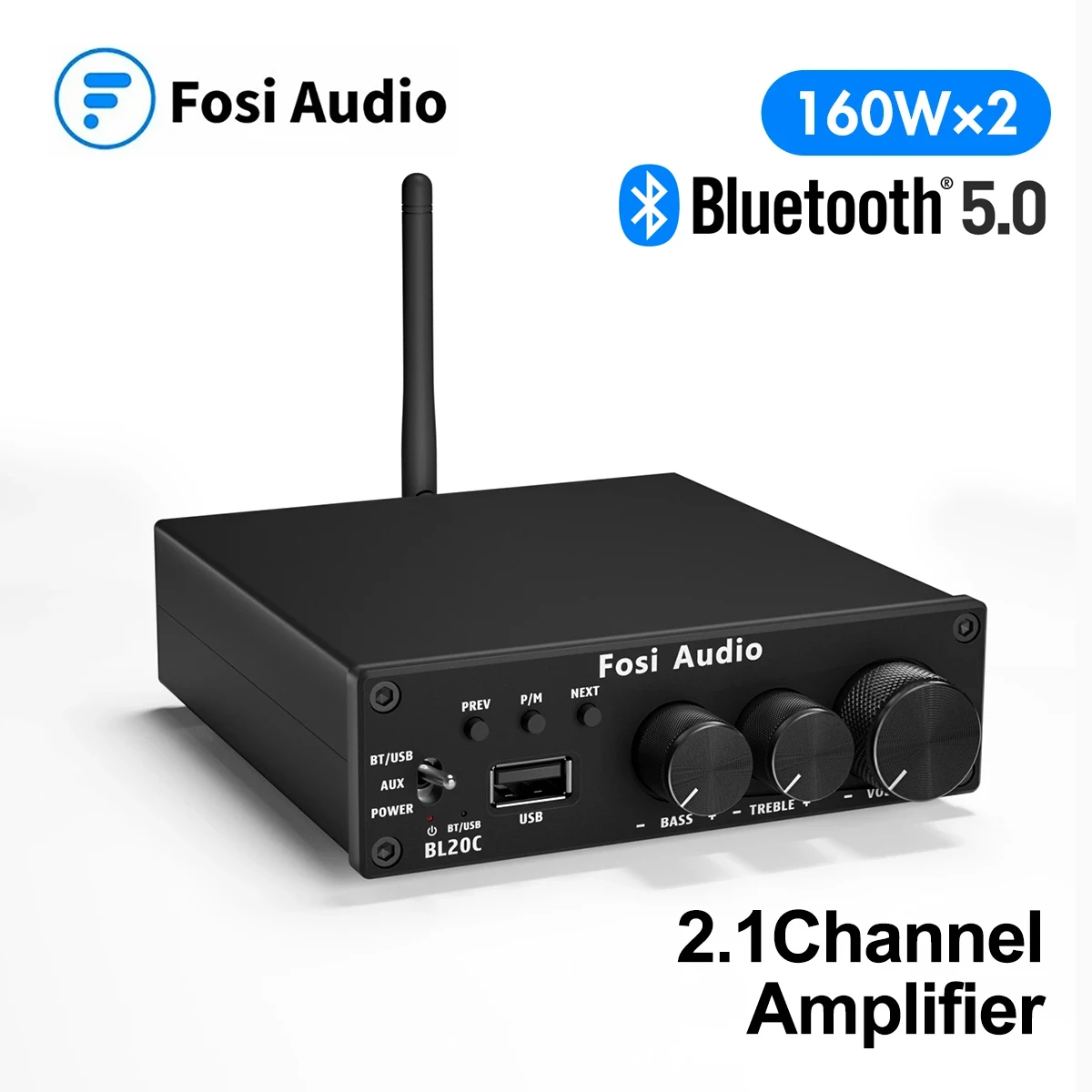 Fosi аудио Bluetooth стерео аудио приемник усилитель 2,1 Mini HiFi Класс D Amp U-диск плеер для пассивного динамика 160 Вт x2