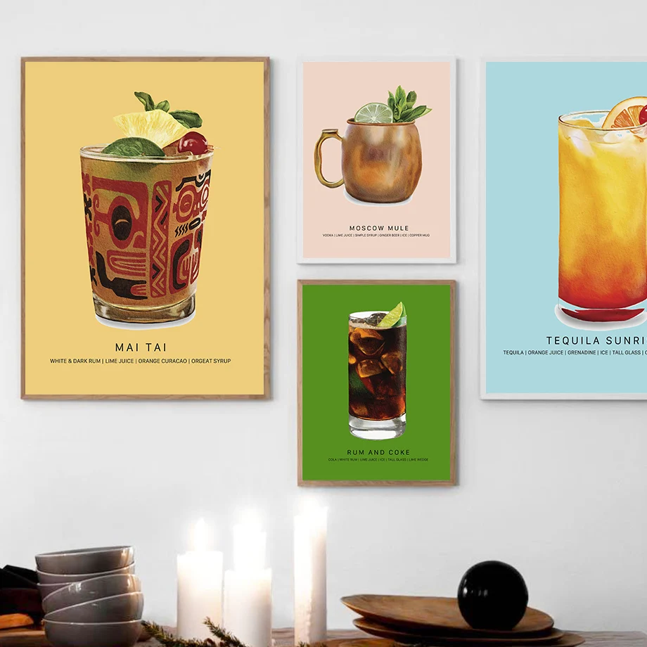 Винный бокал, лимон, вишня, коктейль, скандинавские постеры и принты, настенная живопись на холсте, настенные картины для гостиной, винтажный Декор