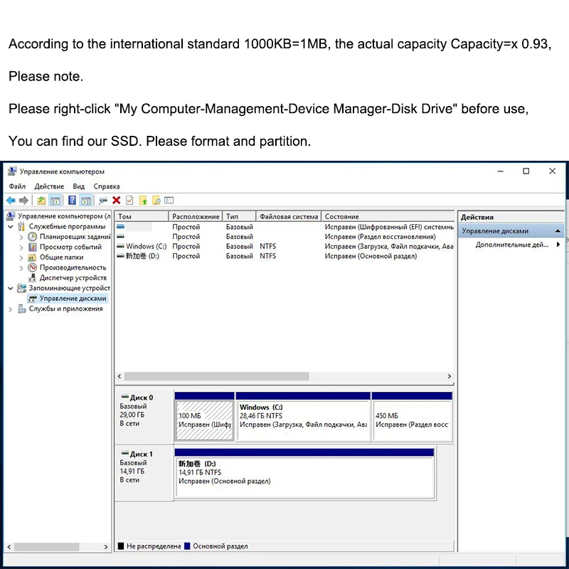 В соответствии с международным стандартом 1000кб = 1 Мб, фактическая емкость = Емкость x 0,93, обратите внимание.