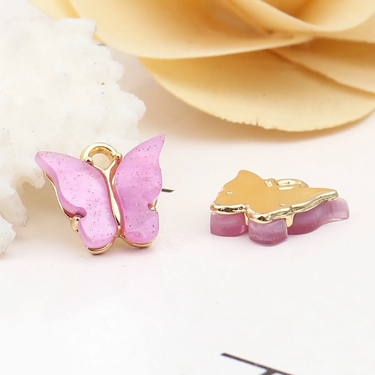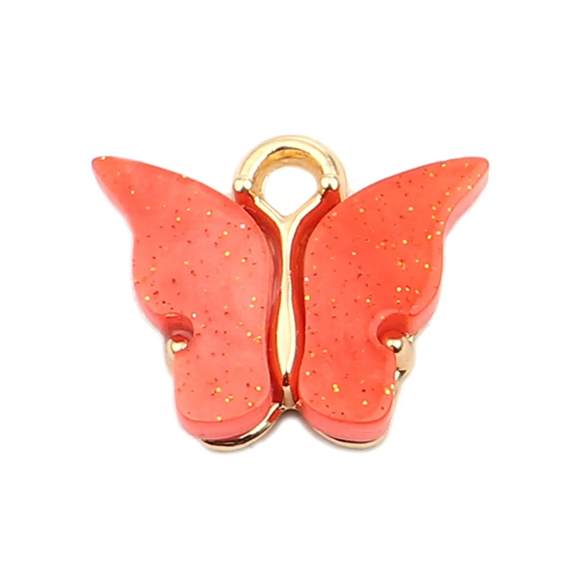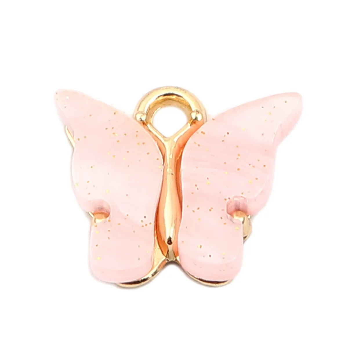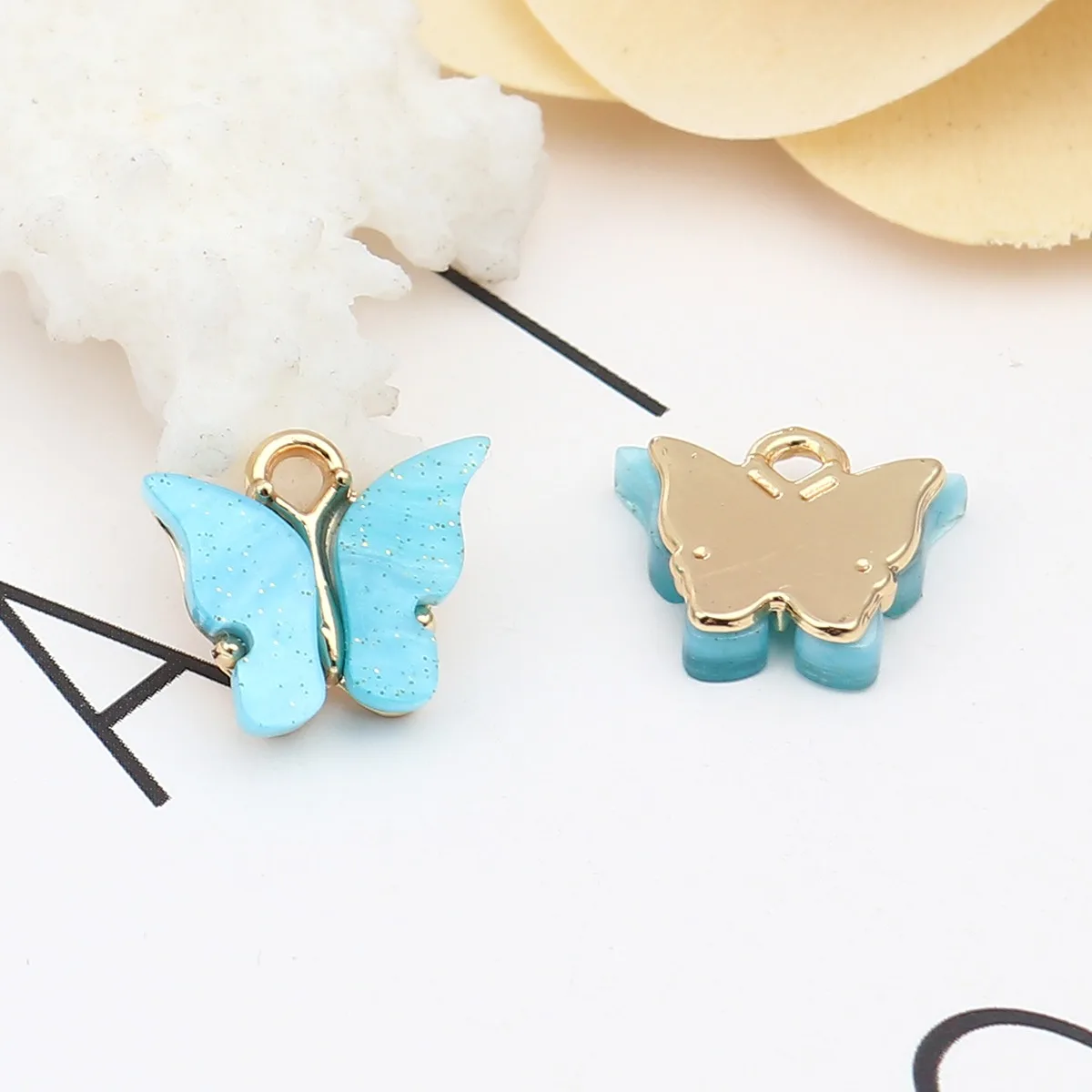 Подвески-бабочки для изготовления ювелирных изделий, из цинкового сплава и акрила, разноцветные, 15x13 мм, 10 шт.