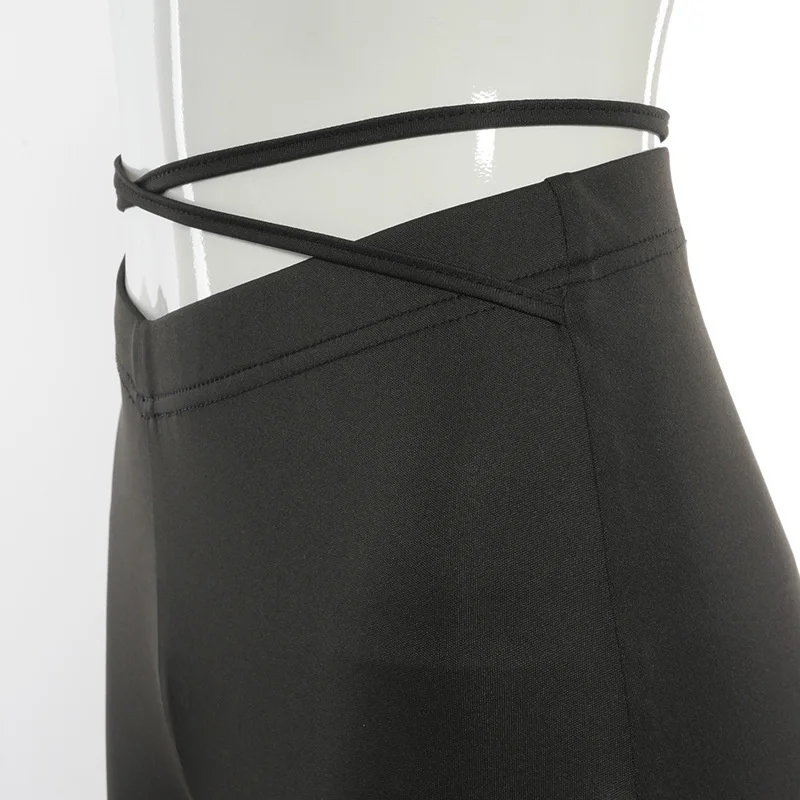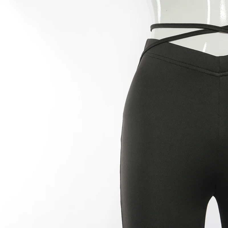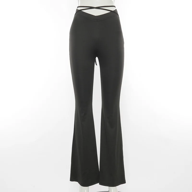 Расклешенные Брюки Cyber Y2k, пикантные Стрейчевые брюки в стиле E-Girl, женские черные брюки в стиле Харадзюку со шнуровкой, V-образной талией и низкой посадкой