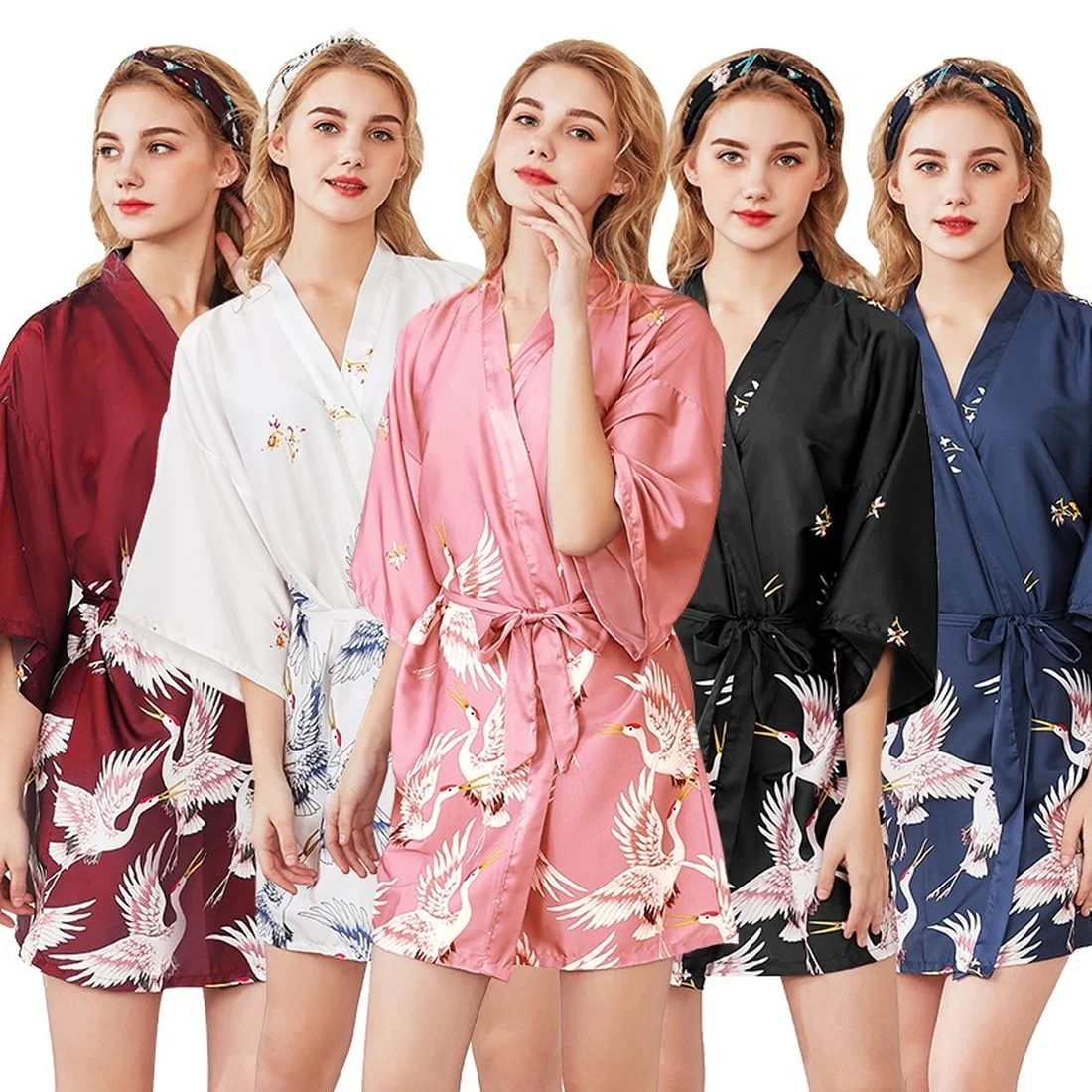 Короткие халаты, Пижама для женщин, экзотическое шелковое кимоно с ...