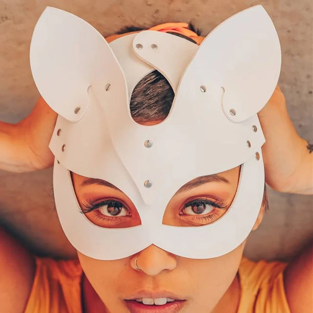Маска из искусственной кожи с рисунком лисы, аксессуары для косплея в японском стиле, для косплея, маскарада, фестиваля, кошки, цвет белыйрозовый