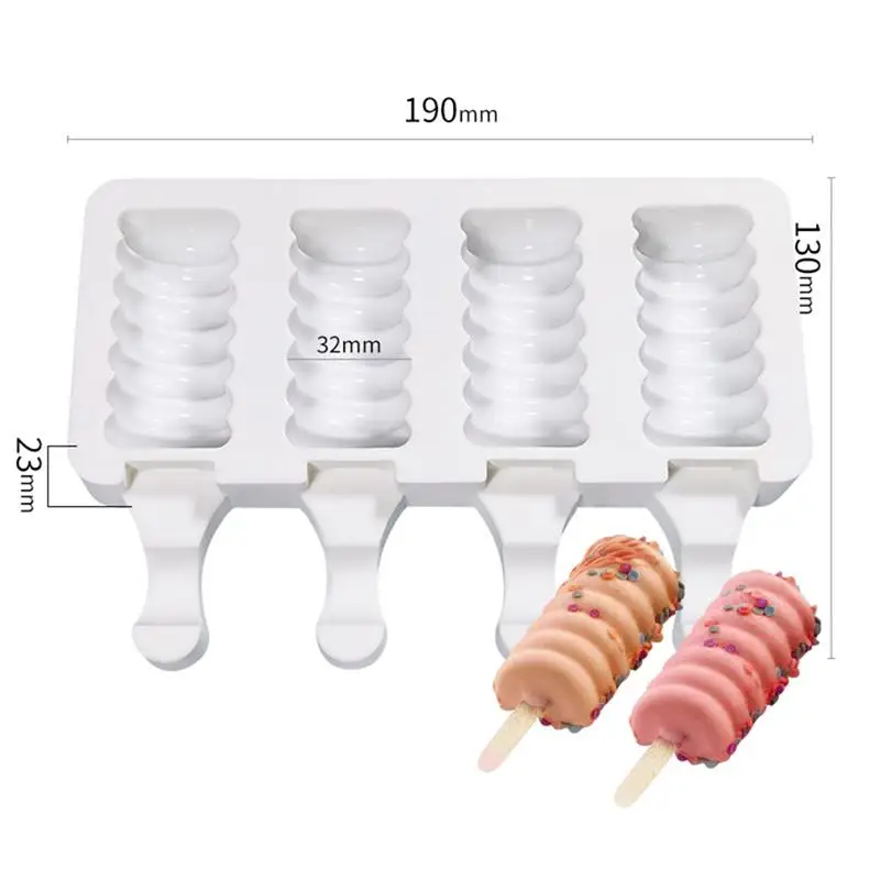 Особенности:Изготовлен из пищевого силикона, нетоксичный и безопасныйНабор из 4 ячеек мороженого, вы можете сделать другой вкусМногоразовая форма для мороженого проста в использовании и чистке
