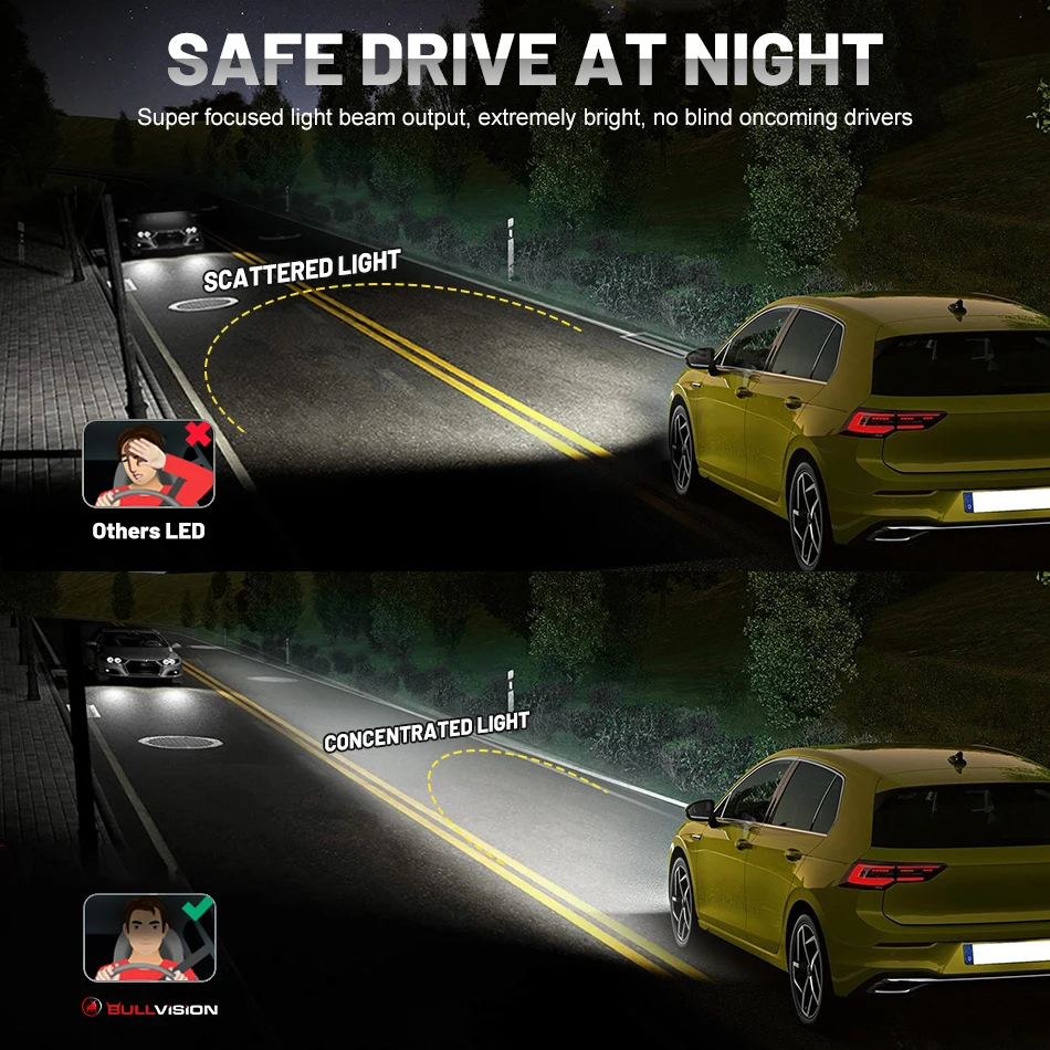 Светодиодные фары Bullvision H11 H4 6000 лм Canbus HB3 HB4 5000K 90...