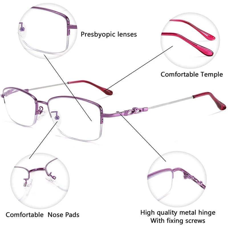 Очки для чтения унисекс, титановые, многофокусные, с эффектом памяти 2021, с защитой от синего излучения, деловые очки в полуоправе, от 1,0 до 4