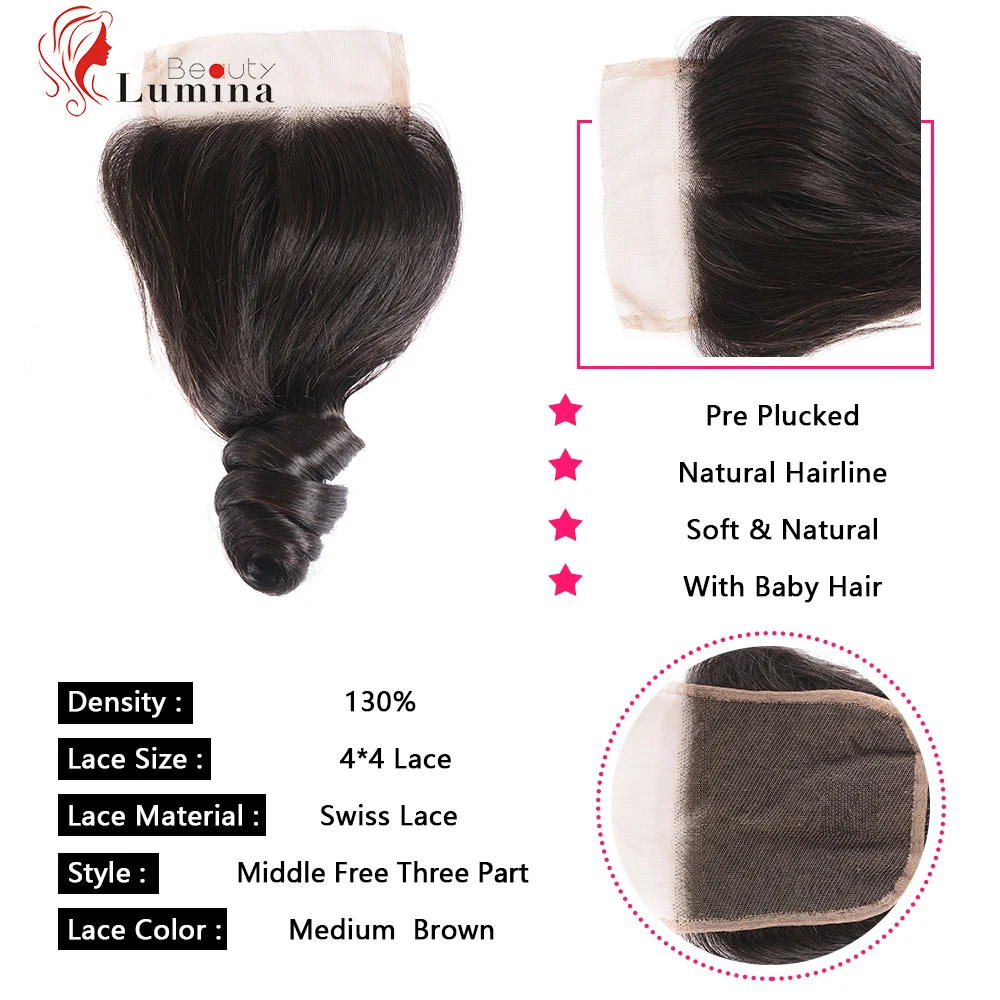 4x4 кружево Закрытие отбеленные узлы бесплатносреднийтри части браз...