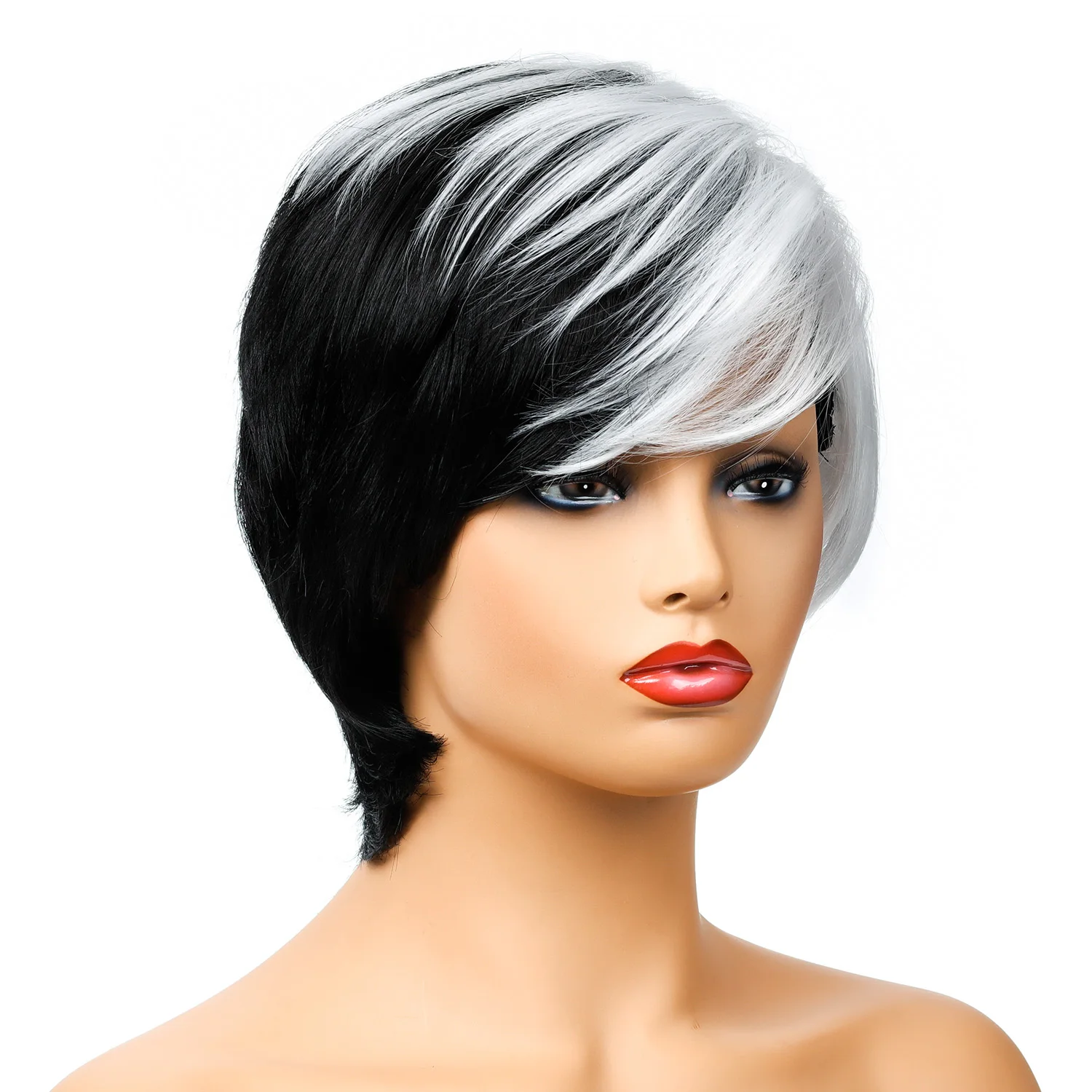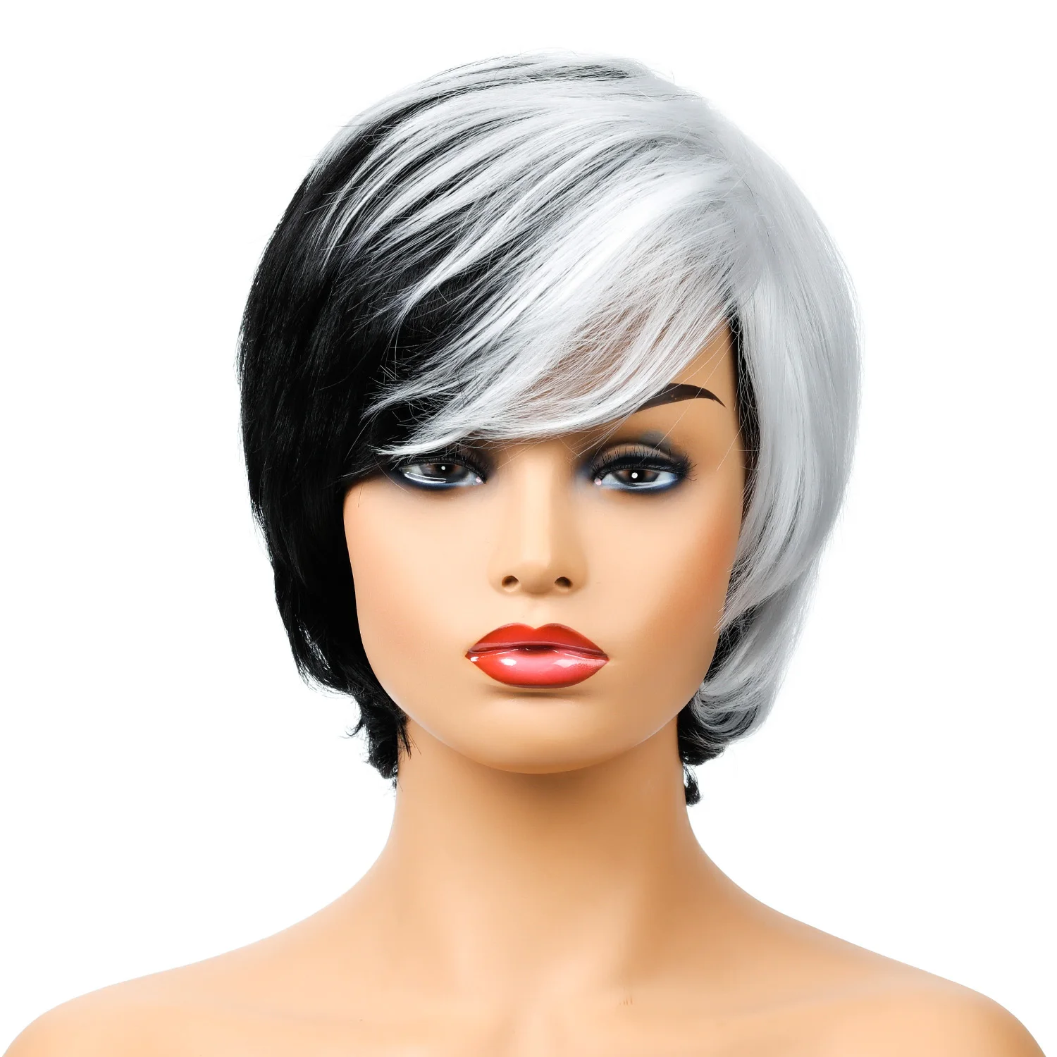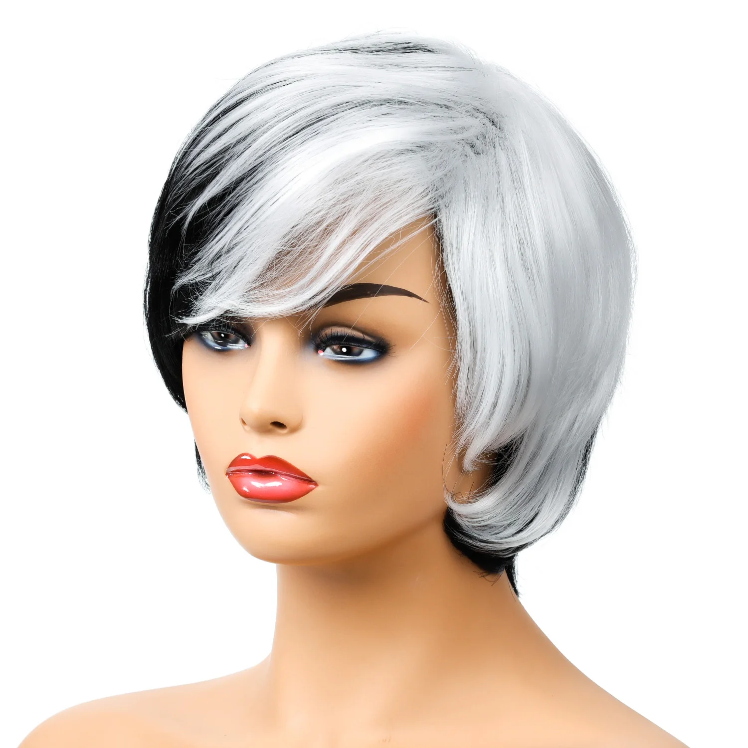 Парики для женщин, синтетические парики, черно-белые короткие волосы, термостойкие волосы, парик из термостойкого волокна