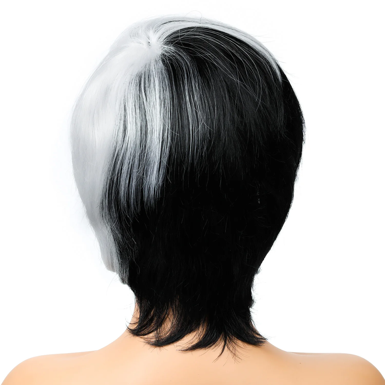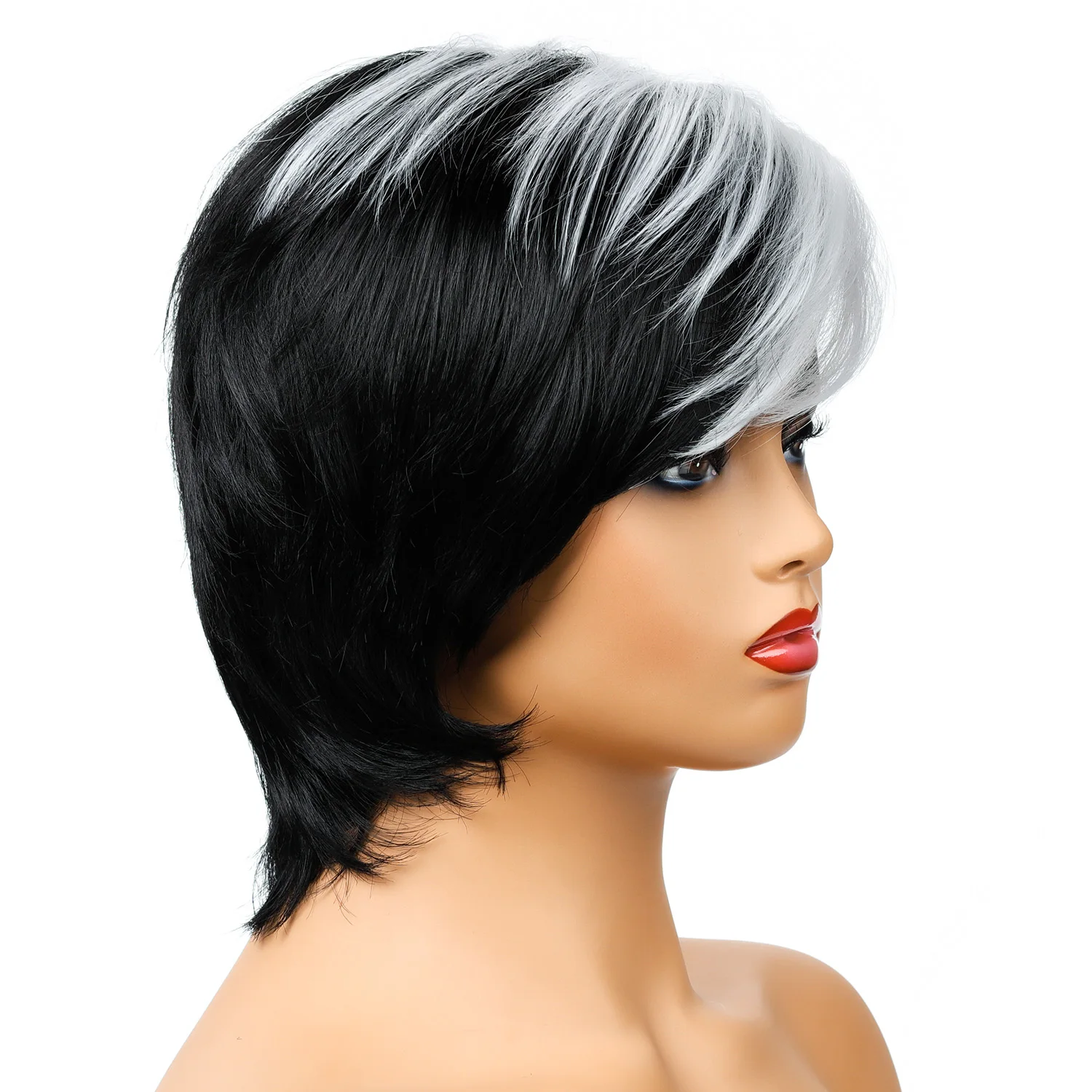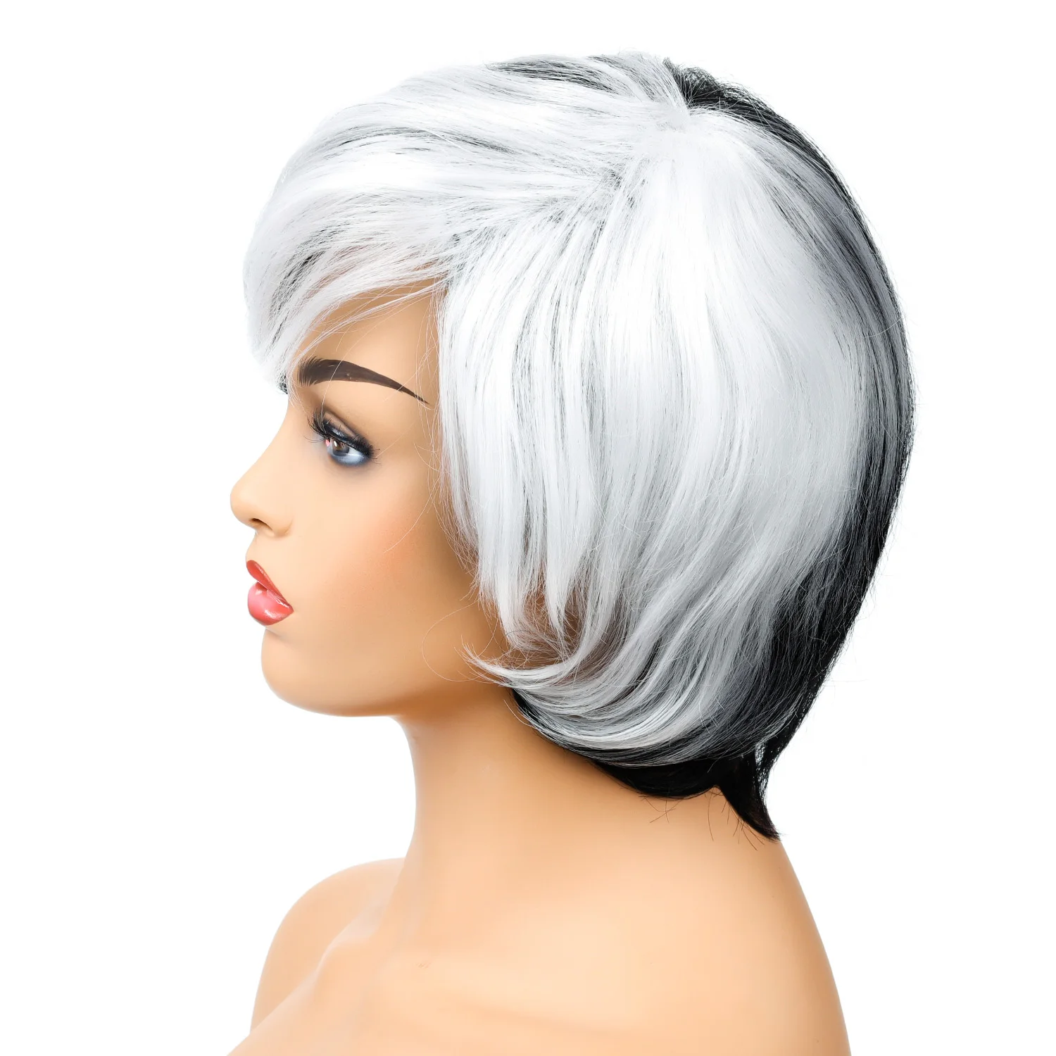 Парики для женщин, синтетические парики, черно-белые короткие волосы, термостойкие волосы, парик из термостойкого волокна