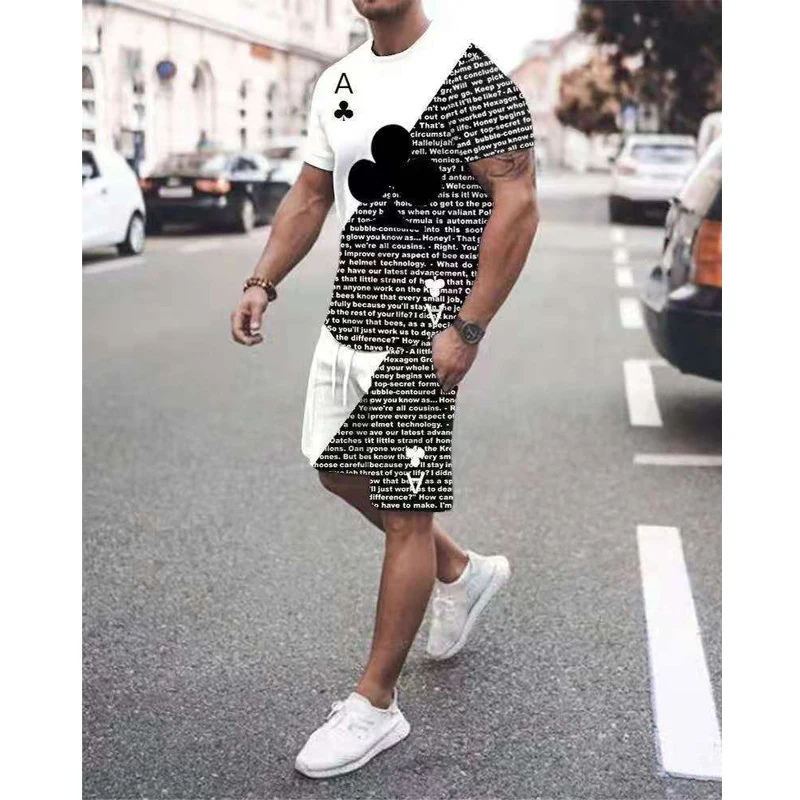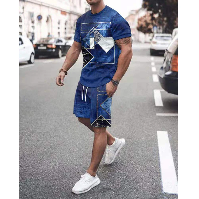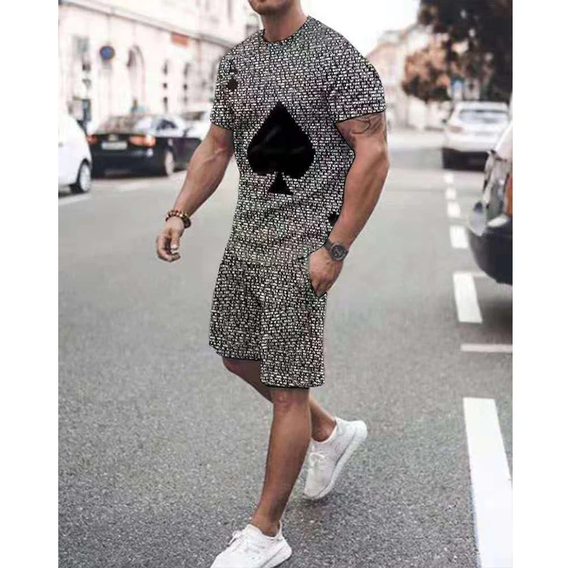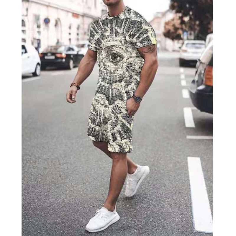 Летний модный спортивный костюм для мужчин, спортивный костюм, крутая футболка с 3D-принтом и короткими рукавами и шорты, комплект из 2 предметов, дышащая Спортивная одежда для бега