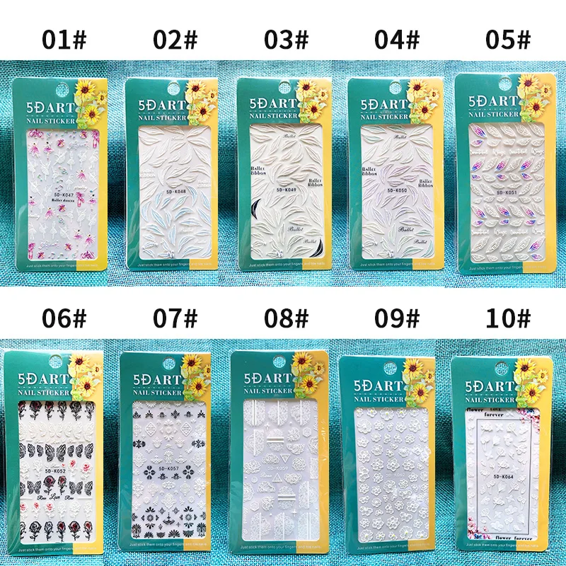 1 шт. простая белая рельефная Цветочная кружевная 5D наклейка трехмерная рельефная наклейка для дизайна ногтей цветочное украшение бабочки
