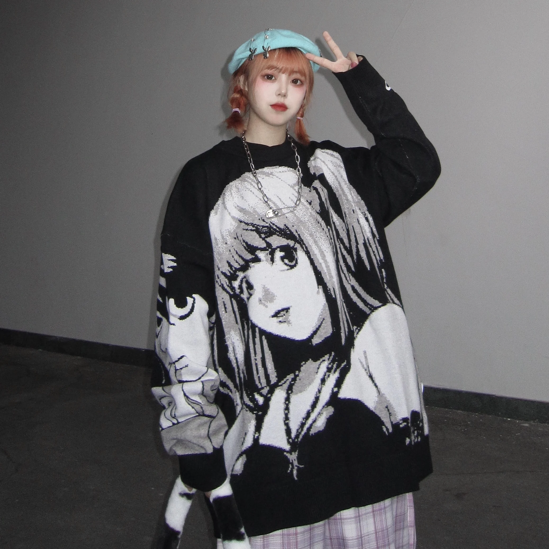 Вязаный свитер в стиле аниме для девочек, мужской уличный свободный...