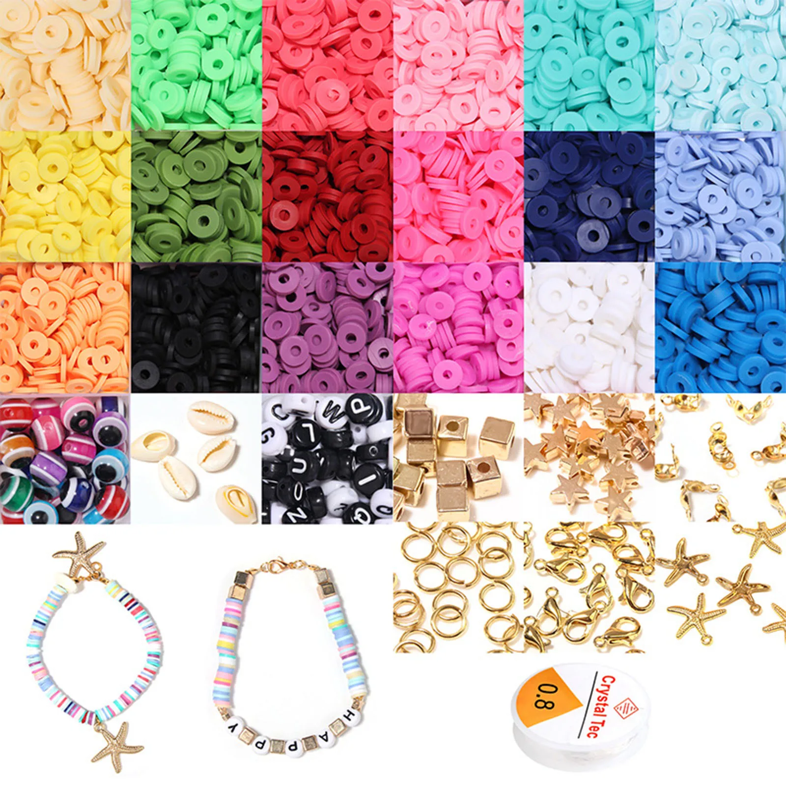 Включает в себя-18 цветных керамических деталей, по 200 шт., 50 смешанных буквенных бусин, 4 мм бусин, 100 подвесок, 20 золотых застежек-лобстеров, 50 застежек-застежек, 100 железных колец, И 1 рулон эластичной нити.Широкое использование-идеальный размер для DIY ожерелья, браслеты, серьги, брелки, лодыжки и много украшений, как вы можете. Купите некоторые из ваших любимых подвесок и их на браслетах.DIY различный стиль-различный смешанный цвет шарики для изготовления ювелирных изделий поддерживает вас, чтобы сделать много различных типов браслетов или ожерелья. Вы можете легко сделать красивый браслет.Аккуратная организация-наша посылка содержит все, что вам нужно, и все аккуратно помещено в коробку. Легкий и веселый комплект!Широкое применение-бусины heishi просты, элегантны и привлекательны, подходят для подростков и взрослых, идеально подходят для солнечной весны и лета, повседневной носки, вечерние, серфер и других случаев.
