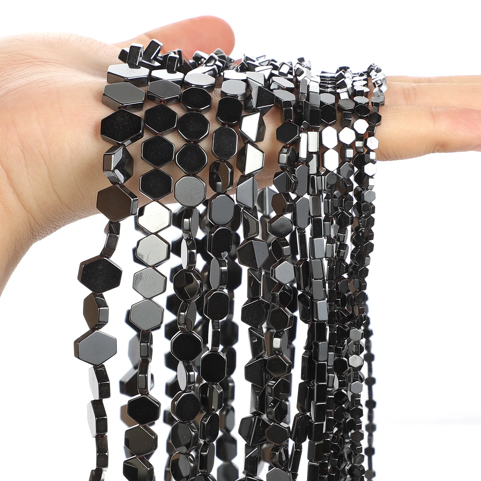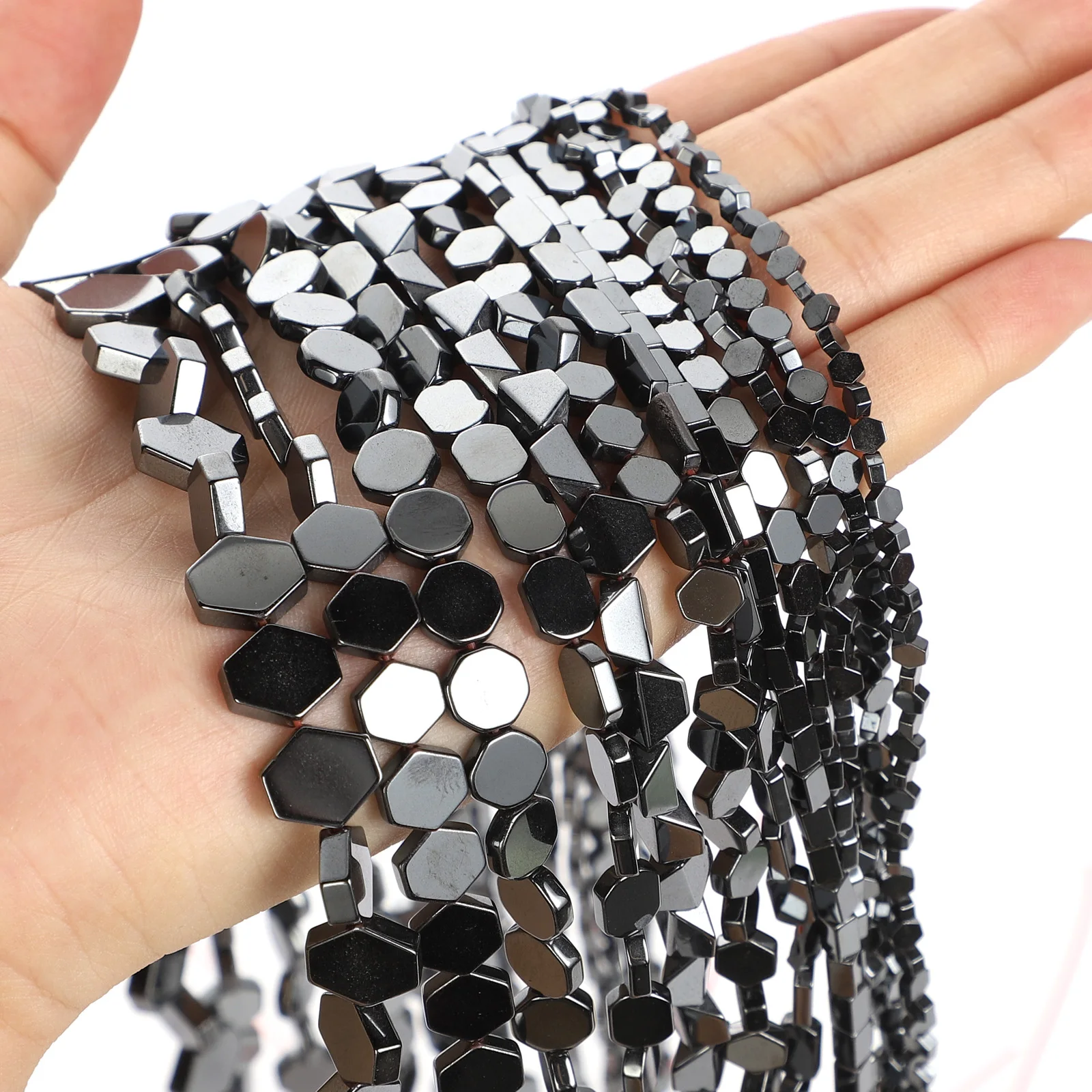 Квадратные бусины из натурального камня, черные бусины из гематита,...
