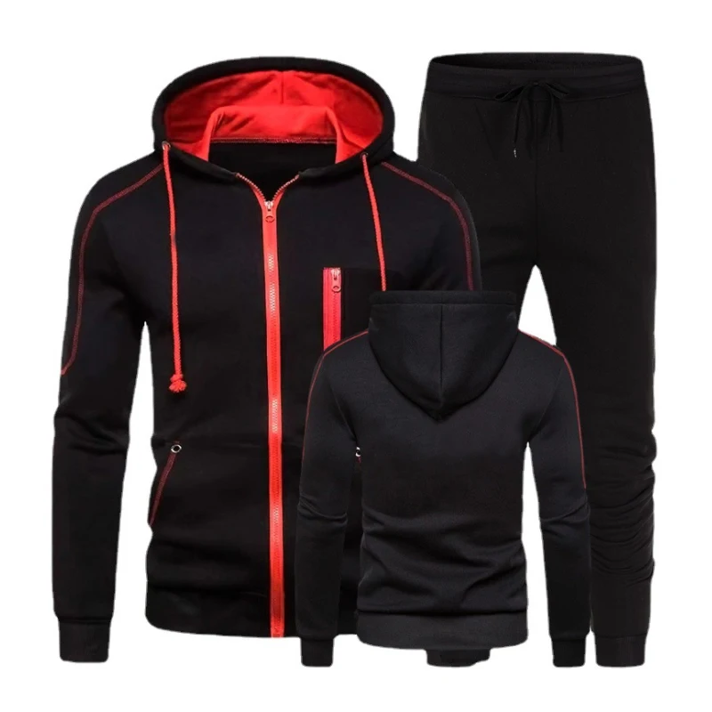 Весенне-осенний мужской комплект из куртки с капюшоном и спортивных брюк на завязках флисовый Повседневный модный трендовый мужской спортивный костюм