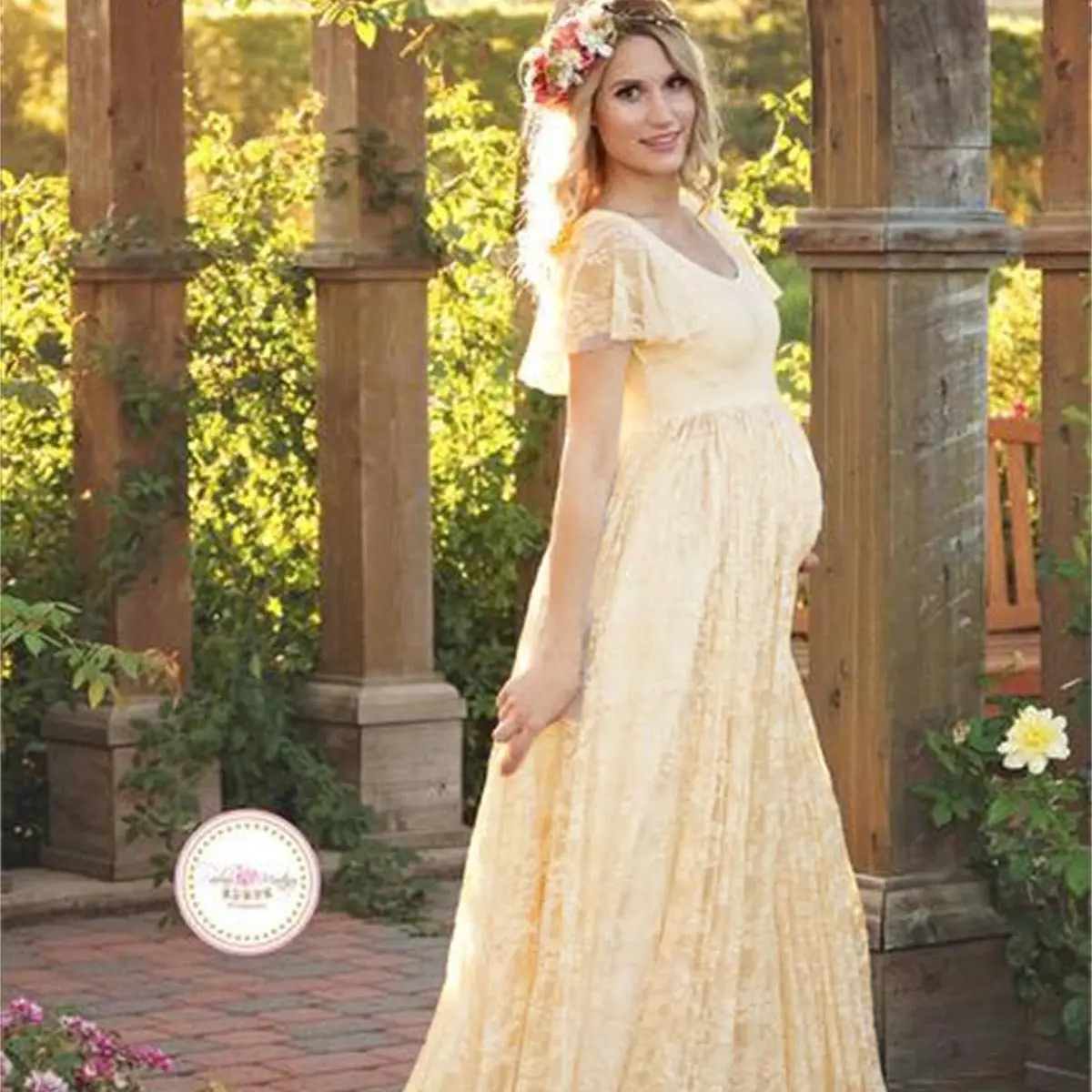 2018 размера плюс платья для беременных для фотосессии, модное круж...