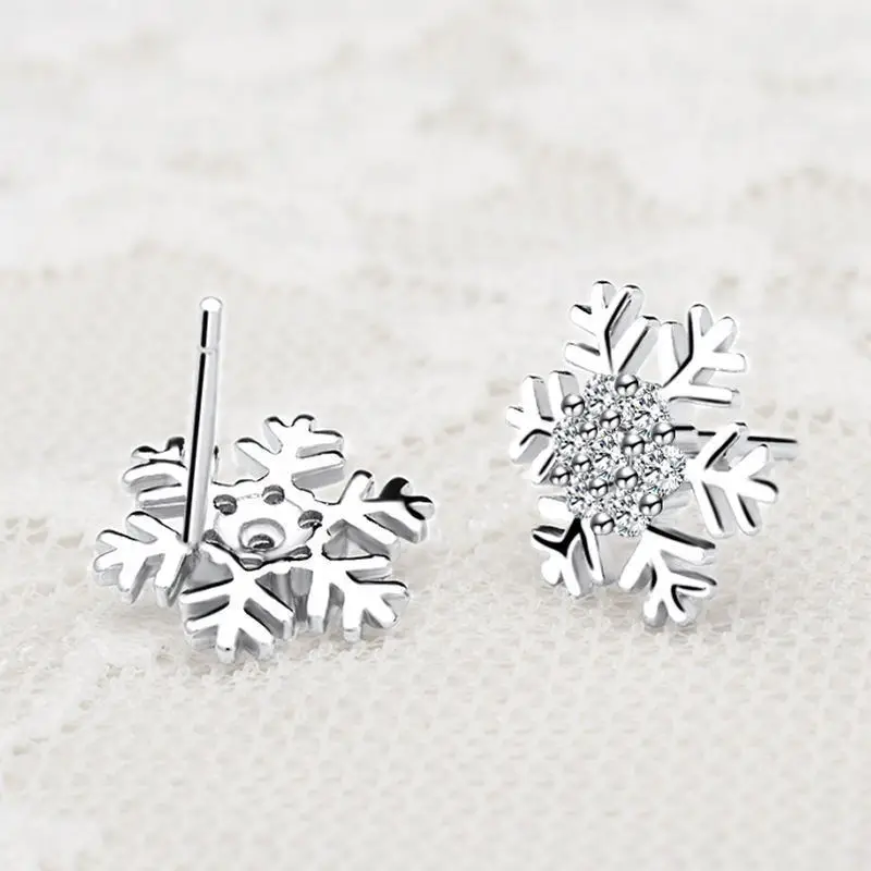 Серьги-гвоздики в виде снежинки с кристаллами циркона для девушек, ...